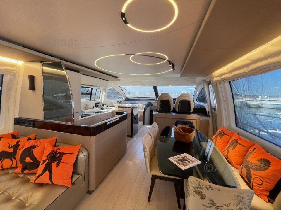 XBOAT ref :6297.cet Azimut 72 Fly n'a eu qu'un seul propriétaire. Enregistré au RIF avec un équipage à l'année, il est entretenu méticuleusement. Il est équipé de toutes les options dont un yacht peut rêver : plate forme arrière immergeable, 4 cabines doubles , cabine marin, grand fly avec bar, stabilisateur Seakeeper, propulseurs avant et arrière, TV par satellite, équipement complet pour la plongée, clim reversible dans tout le bateau, hard top, dessalinisateur 300l/h, 2 groupes electrogène, 3 stations de commande avec Joystick de maneouvre à la timonerie, au fly et au cockpit arrière. Vitesse de croisière 22 nds, vitesse maxi 32 nds.