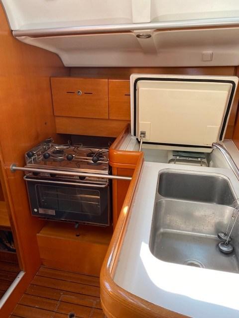 Alternateur, Eau sous pression, Douche de cockpit, Pompe de cale manuelle, Cockpit en teck, Prise de quai, Guindeau électrique.