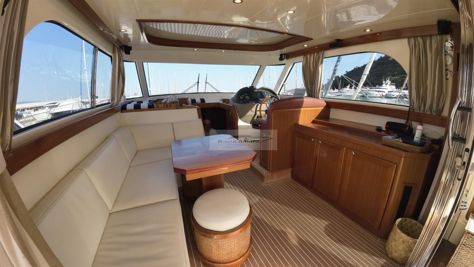 Alarme moteur, Alarme de pompe de cale, Eau sous pression, Passavant en teck, Douche de cockpit, Flaps hydrauliques, Hard top, Indicateurs de flaps, Éclairage de courtoisie, Défenses, Passerelle (IDRAULICA), Plateforme arrière, Pompe de cale manuelle, Pont en teck, Porte latérale, Cockpit en teck, Prise de quai, Onduleur, Guindeau électrique, Echelle de bain, table de cockpit, Table pliante de salon, Annexe, Winch électrique arrière.
