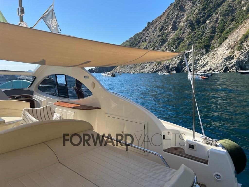 Moteur Volvo Penta, environ 590 heures moteur et full optional : propulseur d’étrave, générateur, climatisation, cockpit en teck, passerelle hydraulique, coussins pleins, dur à électrique, pilote automatique.