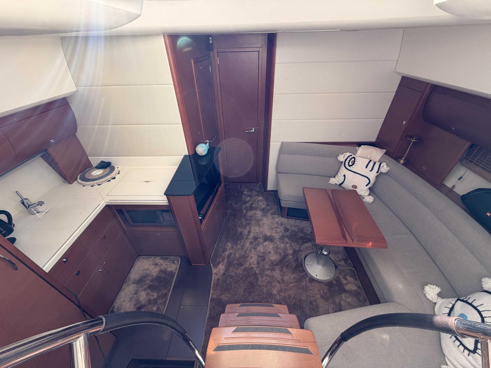 Ce bateau a bénéficié d’un entretien rigoureux et constant. Son état est irréprochable : il est prêt à naviguer immédiatement, sans aucun frais à prévoir.