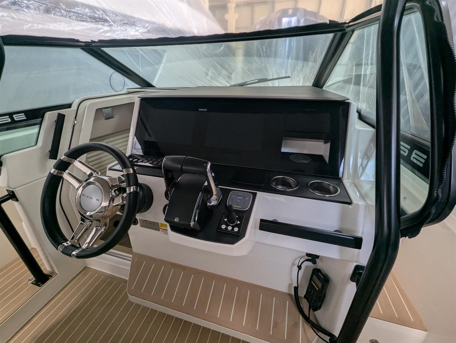 Indicateur d'angle de barre, Ordinateur fixe de bord (Mercury), Compteur de chaîne, Loch (Simrad), Moniteur (Simrad), Sondeur pêche (Simrad), GPS (Simrad), Lecteur de cartes (Simrad), Panneau de commande, Radio VHF (Simrad), 2 Siège copilote.