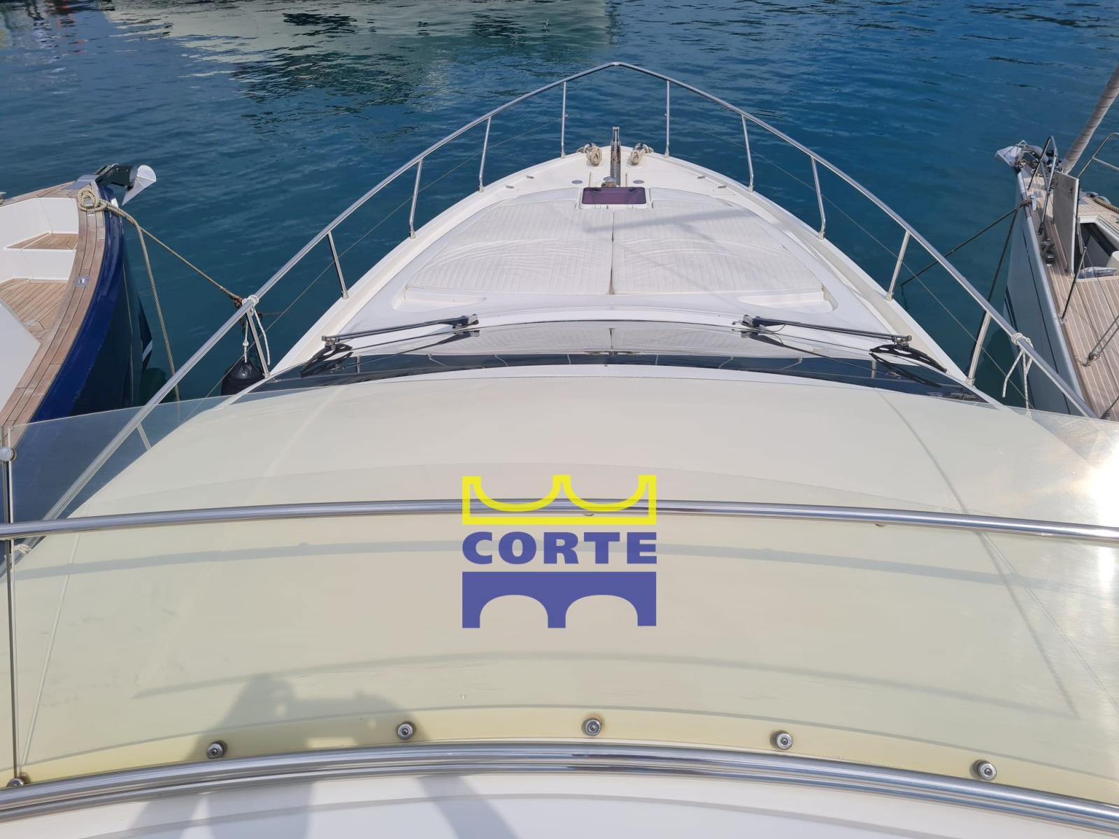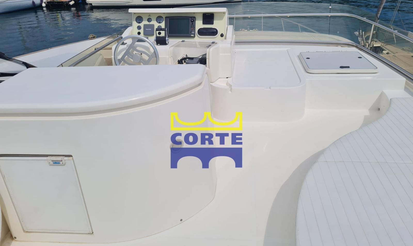 Alarme moteur, Alarme de pompe de cale, Eau sous pression, Douche de cockpit, Double barre à roue, Phare de poursuite, Flaps hydrauliques, Bossoirs pour annexe (passerella elettroidraulica), Extincteur(s) fixe(s), Lavabo dans le cockpit, Éclairage de courtoisie, Passerelle (estensibile in acciaio inox verniciato e teak con sollevamento elettroidraulico con telecomando), Plateforme arrière (/spoiler di poppa in teak con scala da bagno incorporata), Pompe de cale automatique, Porte latérale, Cockpit en teck, Prise de quai, Connexion eau sous pression à quai, Rollbar, Guindeau électrique, Echelle de bain (con maniglioni), table de cockpit, Corne, Winch électrique arrière, Winch électrique avant.
