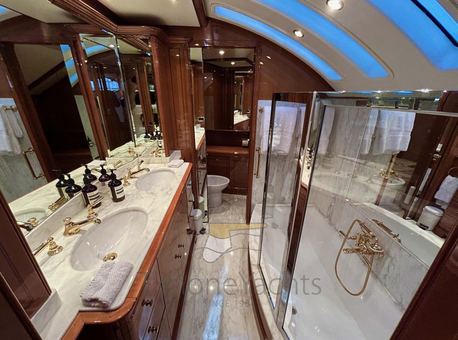 Splendide Benetti Legend 85 Private avec TVA payée. Le bateau est maintenu par l’équipage et en condition exceptionnelle. 4 cabines pour invités pour un total de 10 couchettes et 5 salles de bains pour invités, plus de 2 cabines doubles pour l’équipage, un total de 4 couchettes pour l’équipage et deux salles de bains.