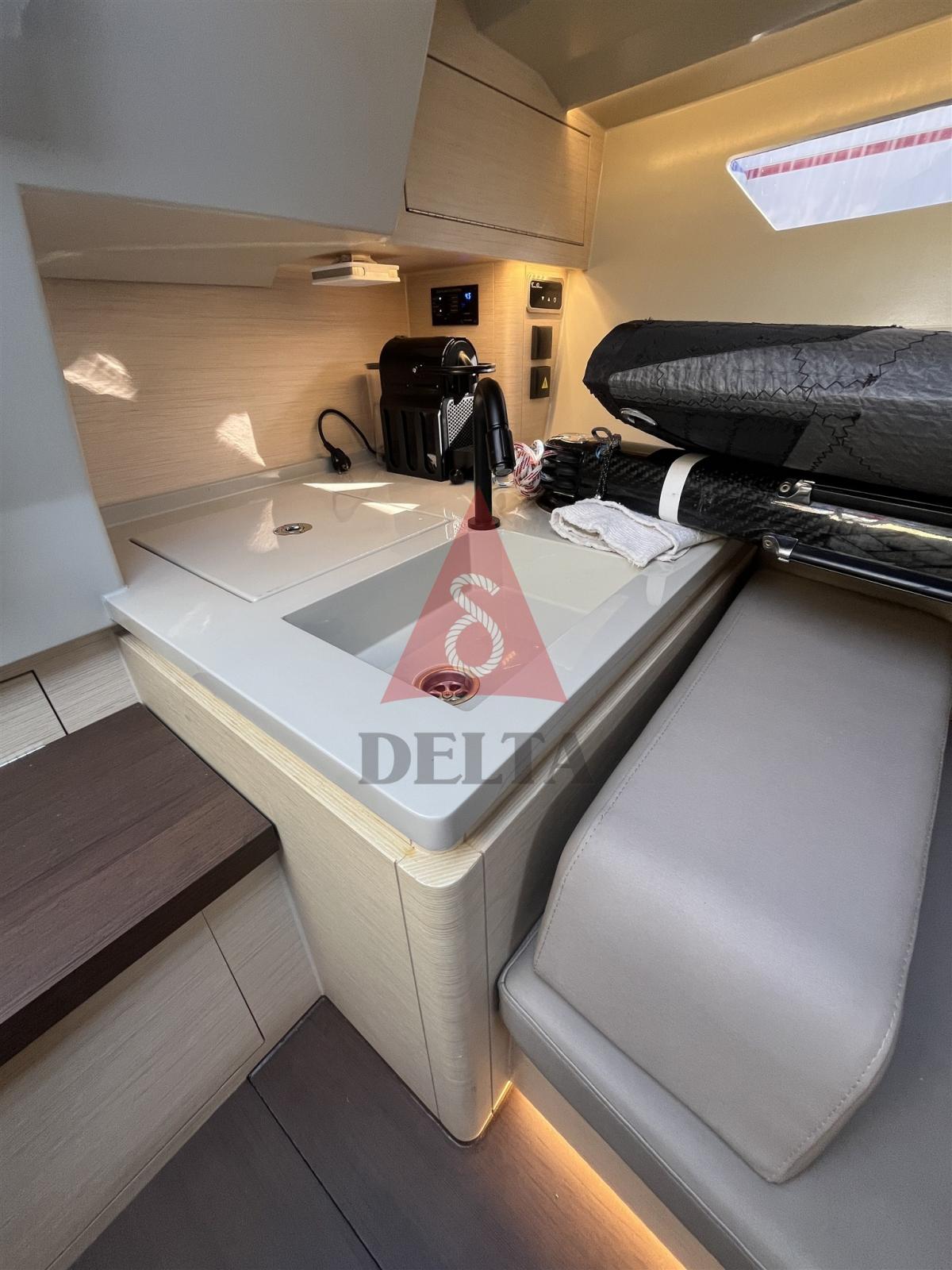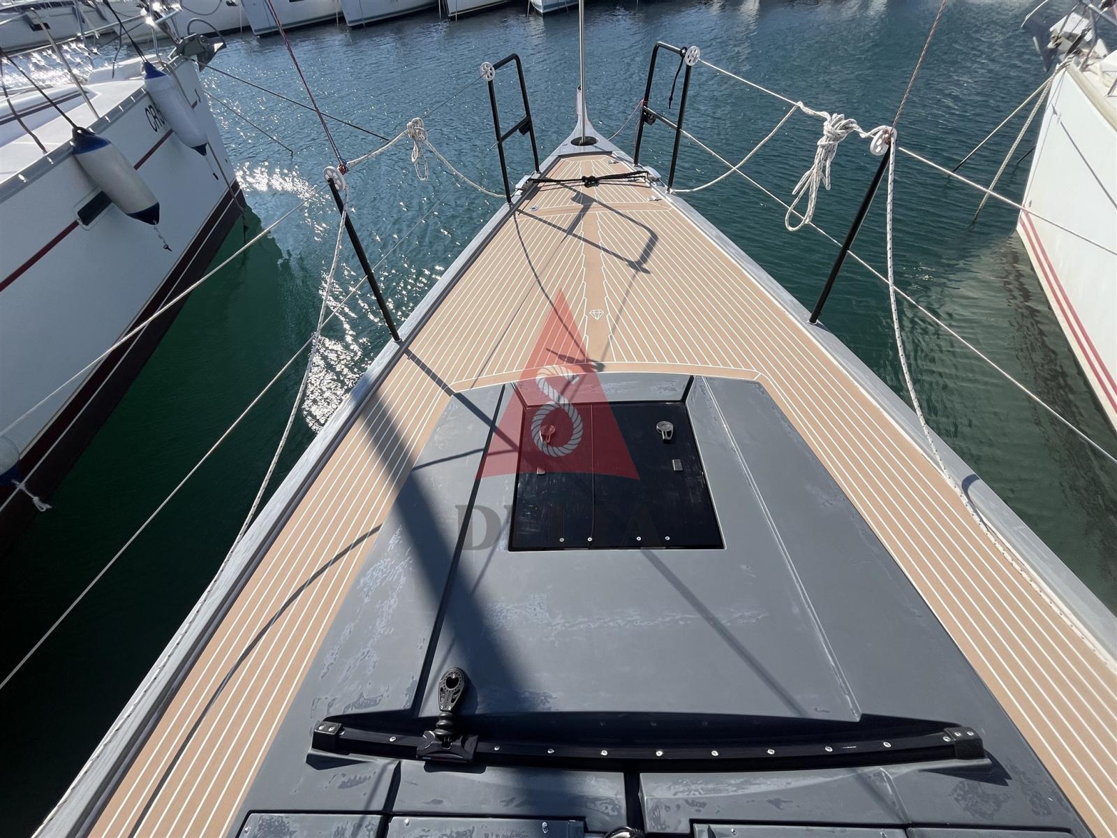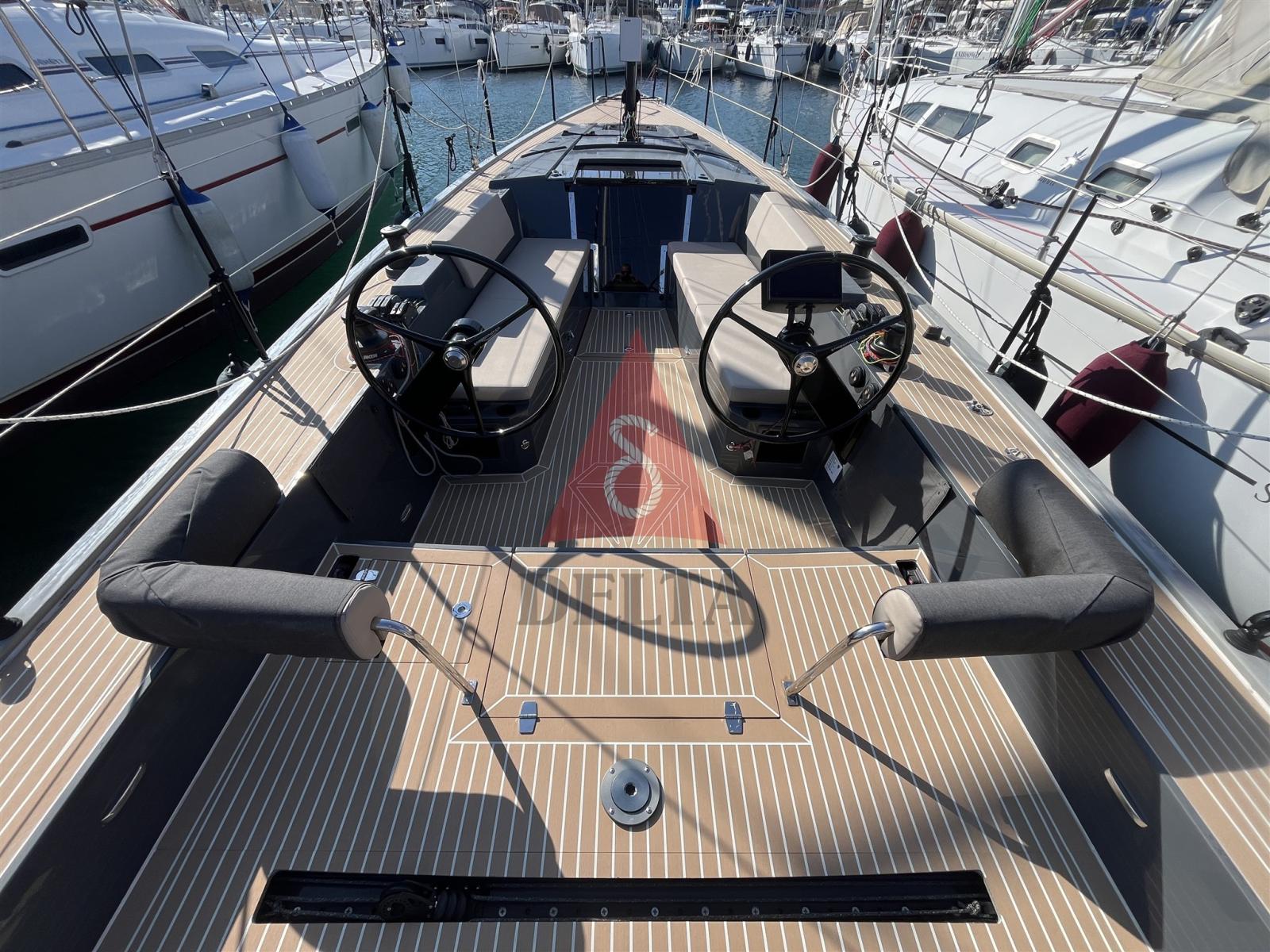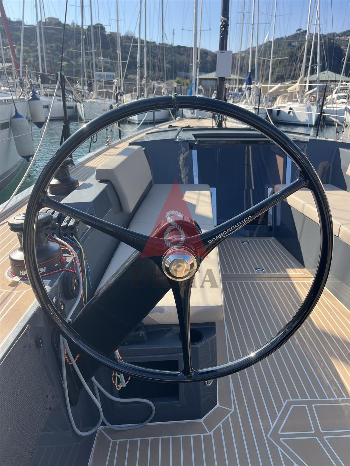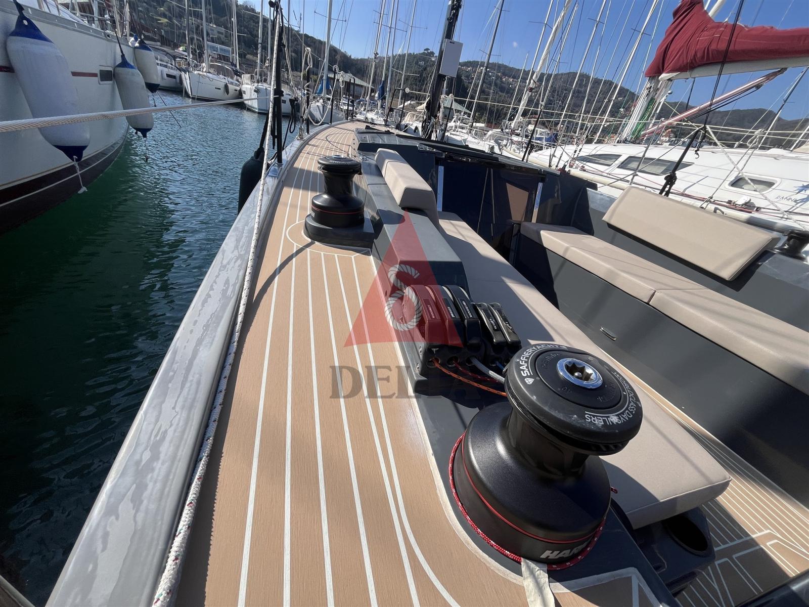 Alarme moteur, Ancre (Inox), Eau sous pression, Passavant en teck (fleexitek), Couleur spéciale (Graphite Grey), Douche de cockpit, Double barre à roue, Éclairage de courtoisie, Moniteur de batterie, Pompe de cale manuelle, Cockpit en teck (fleexitek), Prise de quai, Guindeau électrique (Maxwell HRC-FF6), Gréement Rod, Echelle de bain (a scomparsa), 2 Winch (Harken Rewind 40), 2 Winch électrique (Herken Rewind 40), Windex.
