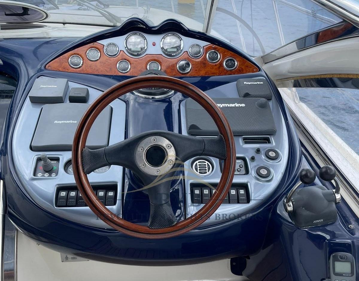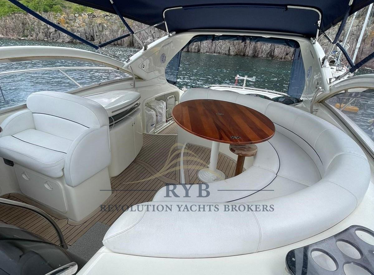 Alarme moteur, Eau sous pression, Douche de cockpit, Flaps hydrauliques, Garage à annexe, Passerelle, Plateforme arrière, Pompe de cale automatique, Pompe de cale manuelle, Cockpit en teck, Prise de quai, Guindeau électrique, Echelle de bain, table de cockpit.