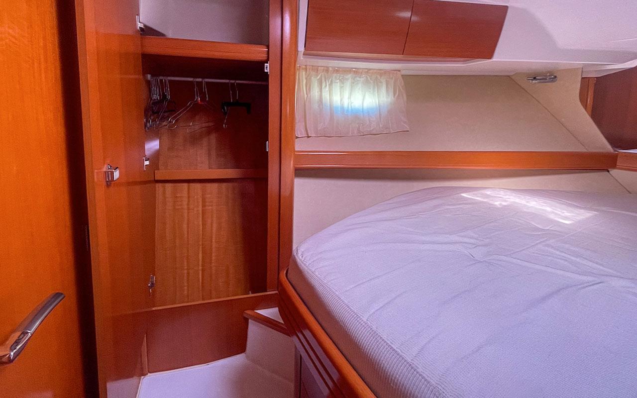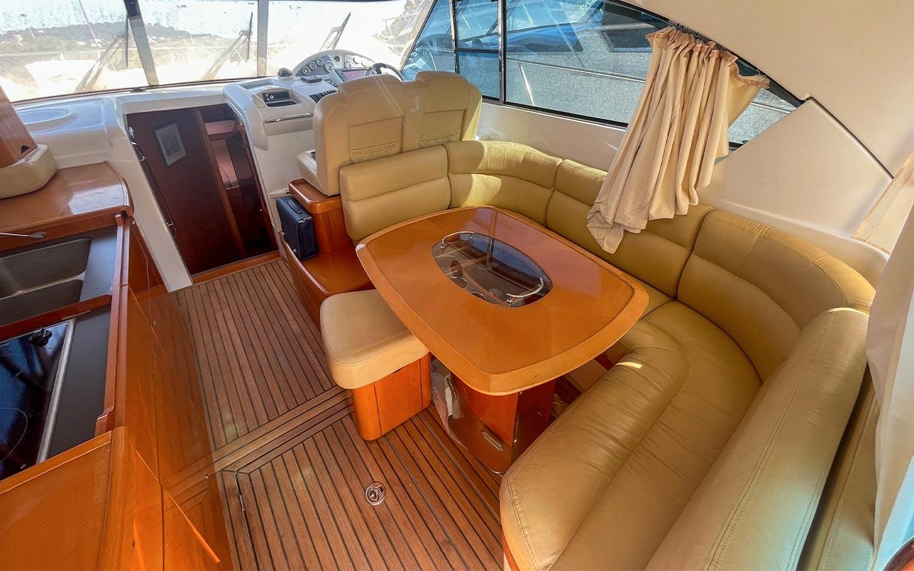 L'intérieur se compose d'un carré convivial, d'un poste de pilotage, d'une cuisine ainsi que de 2 cabines et 2 salles d'eau, idéal pour passer les vacances en famille à bord.