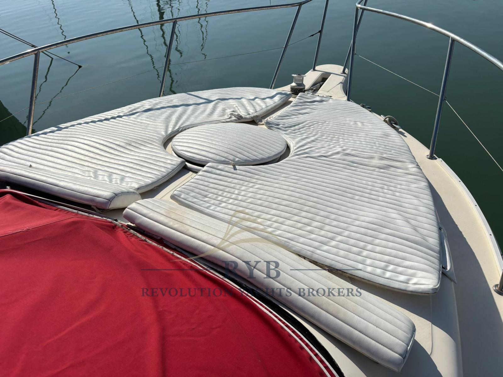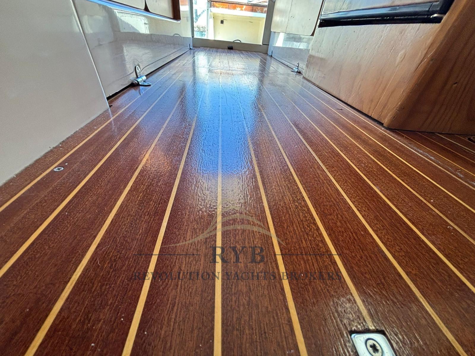 Alarme moteur, Eau sous pression, Flaps électriques, Plateforme arrière, Pompe de cale automatique, Porte latérale, Cockpit en teck, Prise de quai, Guindeau électrique.