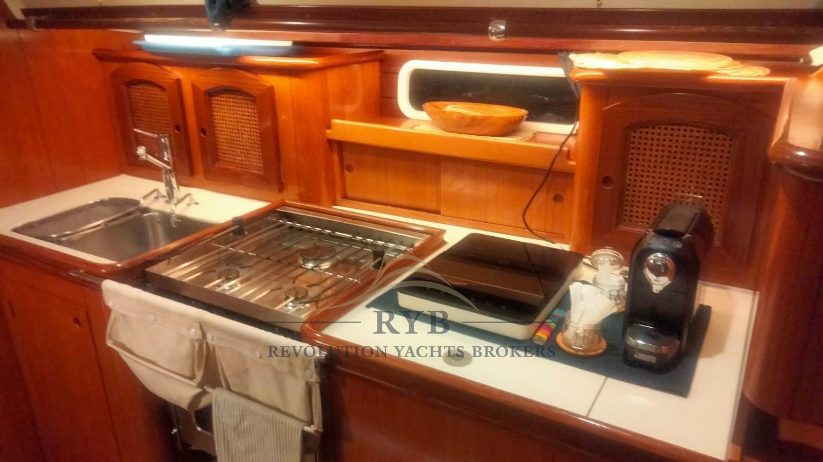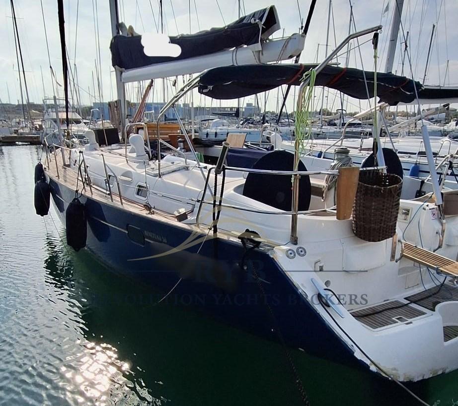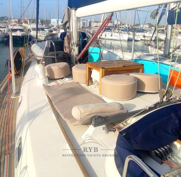 Alarme moteur, Eau sous pression, Douche de cockpit, Double barre à roue, Propulseur d'étrave (retrattile), Bossoirs, Passerelle, Plateforme arrière, Pompe de cale manuelle, Porte latérale, Cockpit en teck, Prise de quai, Connexion eau sous pression à quai, Onduleur, Guindeau électrique, Gréement monotoron, Echelle de bain, Chaise support HB, table de cockpit, Table pliante de salon, Winch, 4 Winch électrique.