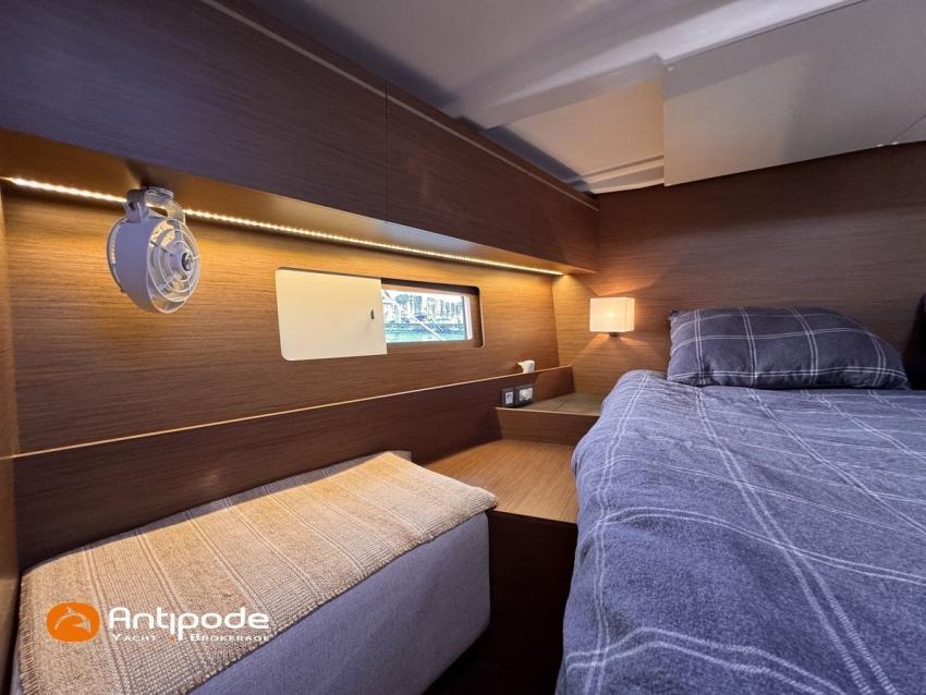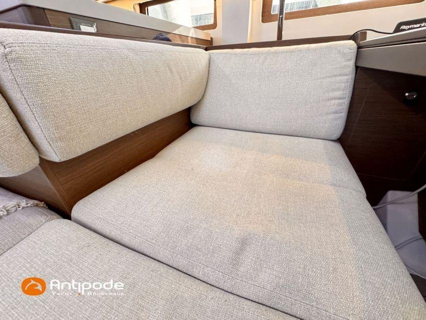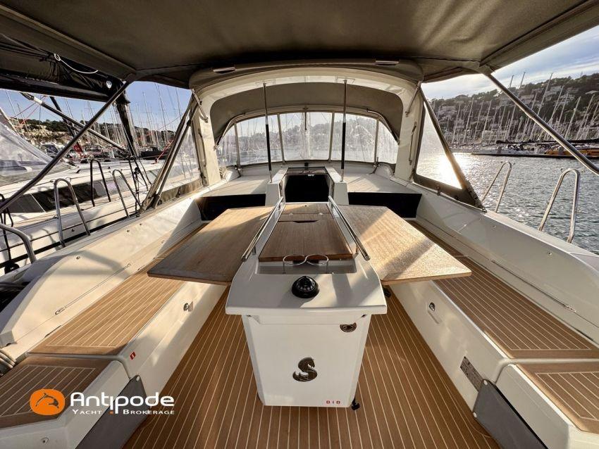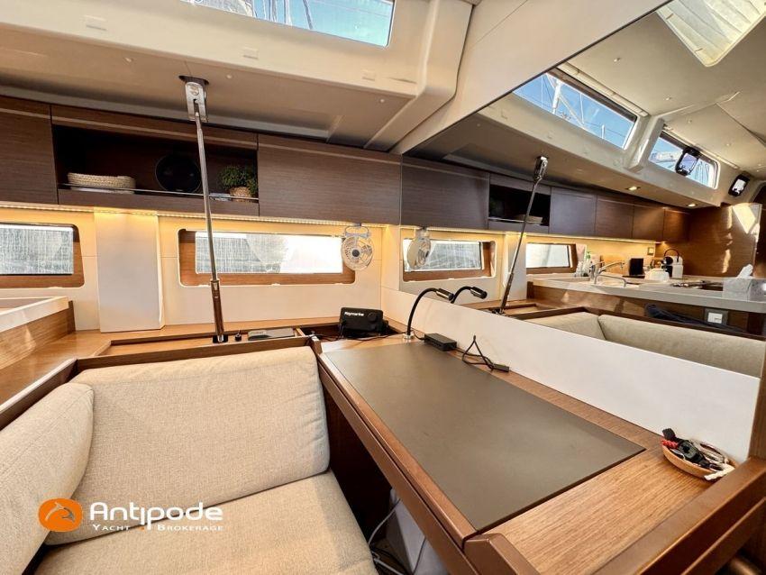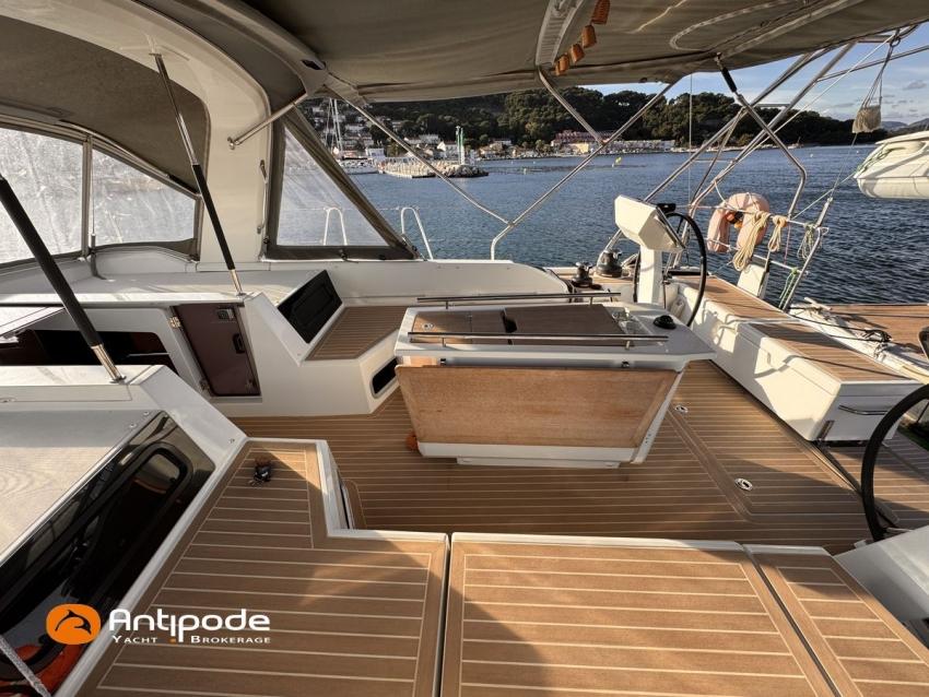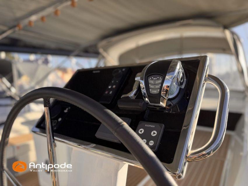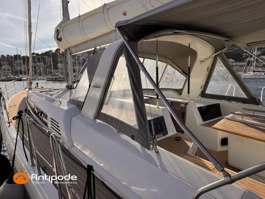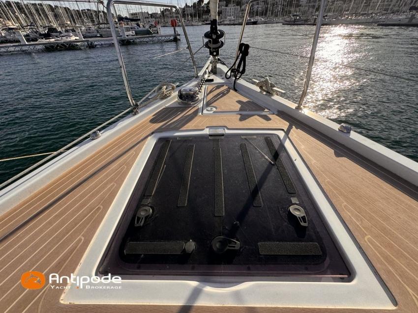OCEANIS 51.1, 2023, 1ère main, bateau de propriétaire, jamais loué, pas d'accident, Yanmar 4JH110, 110 cv (350 h), Propulseur d'étrave, Finition Family, Menuiseries finition - Alpi Noyer, Version d'aménagement intérieur 1 cabine avant, 2 cabines arrières, Cabine équipage aménagée (sans toilettes), accès par panneau de pont, Table de carré convertible en couchette double, Pack Offshore grandes consoles de barres, Pack Upwind + downwind, 2 winchs électriques sur roof pour réglages et manoeuvres - Harken 46, Arceau polyester de cockpit pour écoute de grand voile, Ecoute de GV - German system, Passavants - Flexiteek, Fond de cockpit - Flexiteek, Assises de cockpit - Flexiteek, Table de cockpit avec abattants bois, rangement radeau de survie, 2 consoles de barres à roue inox 900 mn, leather covered, Tableau arrière basculant convertible en plage de bain, avec système de relevage électrique à distance et télécommandes, Capote de roof, Bimini top cockpit, Coussins de cockpit avec dossiers, Coussins bains de soleil , Télécommande guindeau au cockpit, Ouvertures latérales dans les filières babord et tribord, Protection étrave inox, Arceau arrière inox avec système de bossoirs et supports pour panneaux solaires, Pack mât classique , Grand-voile semi-lattée, Lazy-bag de grand voile, Génois sur enrouleur 110 % (en remplacement du foc autovireur standard), Pilote automatique in board Raymarine - P705, Télécommande à distance du pilote, 2 afficheurs cockpit - Raymarine 170 S, 2 X GPS / lecteur de carte consoles de cockpit - Raymarine Axiom 9, Transpondeur AIS (émetteur récepteur) - Raymarine AIS 700, VHF à la table à carte - Raymarine RAY 73, 2 ème combiné VHF RAY 90, Système son FUSION, Unité réfrigérante 12 V ouverture par le dessus, Unité réfrigérante 12 V porte frontale - 130 l, Congélateur - 85 l, Plancha gaz cockpit, Machine à laver le linge / sèche-linge V, Prise de quai 220 V + chargeur de batteries - Cristec 60 amp, Alternateur moteur 125 amp, Batteries service - 2 X AGM 140 amp, Batteries supplémentaires - 3 X AGM 100 amp, Convertisseur 12 V / 220 V - 2000 VA, Prises USB - X 6 , Chauffage fuel air pulsé Webasto (2 unités), Ventilateurs de carré et cabines, WC électriques X 2 (eau douce et eau de mer), Panneaux solaires - 2 X 375 W, Réservoirs eau douce sup. 2 X 165 litres (730 litres au total), Réservoir de gazoil supplémentaire 200 litres (400 litres en tout), Feux de navigations à Leds, Annexe - 3D TENDER, Moteur hors-bord - Yamaha 15, Visible Méditerranée française. Pour plus d'informations ou pour fixer un rendez-vous de visite, contact : Jérôme Le Joubioux 06 07 45 71 73 - jerome@antipode-yachts.com