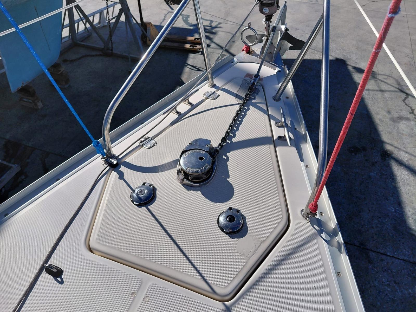 Ancre (5 kg con 30 m catena del 6), Eau sous pression, 2 Batteries (1 servizi 80amph 1 motore 70 amph), Câble d’alimentation à quai, Douche de cockpit, Panneau solaire (70 amp), 4 Défenses, Pompe de cale manuelle, Prise de quai, Guindeau électrique, Gréement monotoron, Echelle de bain, table de cockpit, Table pliante de salon, 2 Winch.