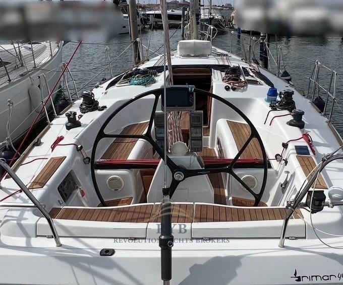 Ancre (DELTA 20 KG + 65 m. di catena, diam.8), Chargeur de batterie (45aH), Douche de cockpit, Propulseur d'étrave (RMC - RETRATTILE), Éclairage de courtoisie, Plateforme arrière, Cockpit en teck, Guindeau électrique (1400W + Pulsantiera con contametri e strumento ripetitore comando in pozzetto), Gréement monotoron, Echelle de bain, table de cockpit (PIEGHEVOLE E ASPORTABILE), Winch, 3 Winch électrique (HARKEN), Windex.