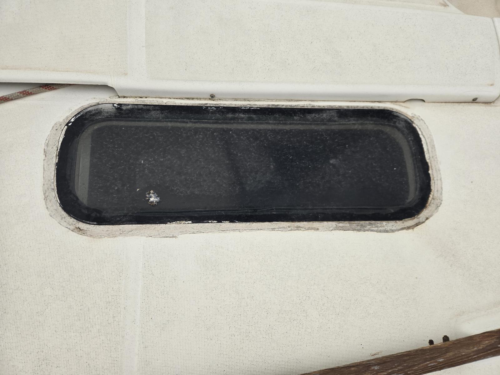 Sur le pont, une partie de la poupe nécessite une réparation de la fibre de verre. Quelques drisses sont à remplacer. Les butées de pont doivent également être remplacées.