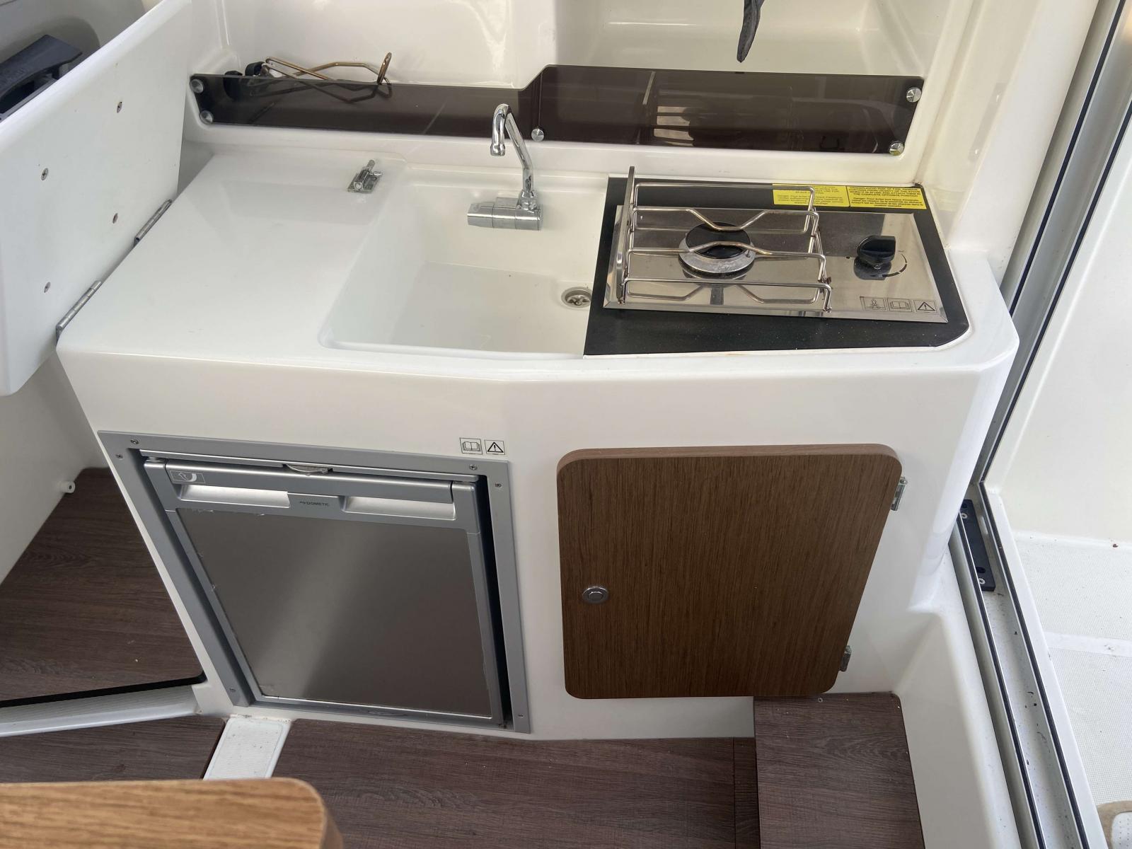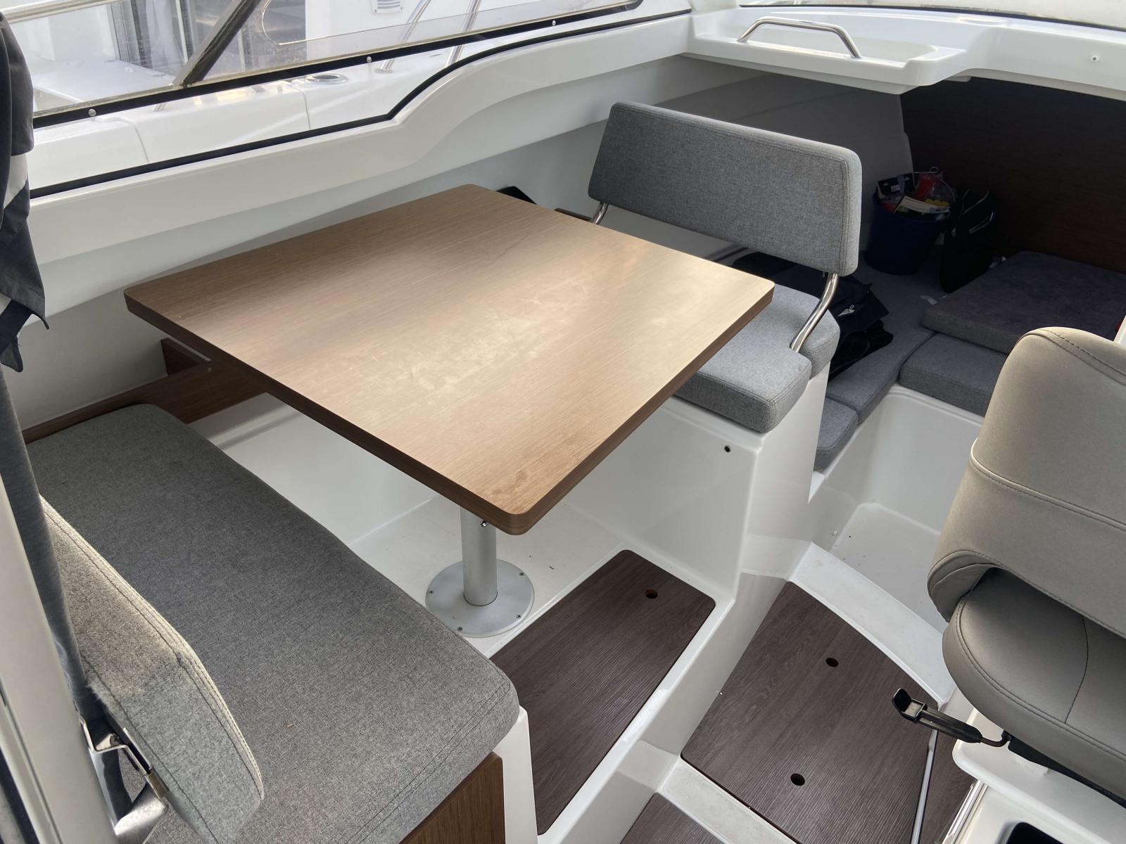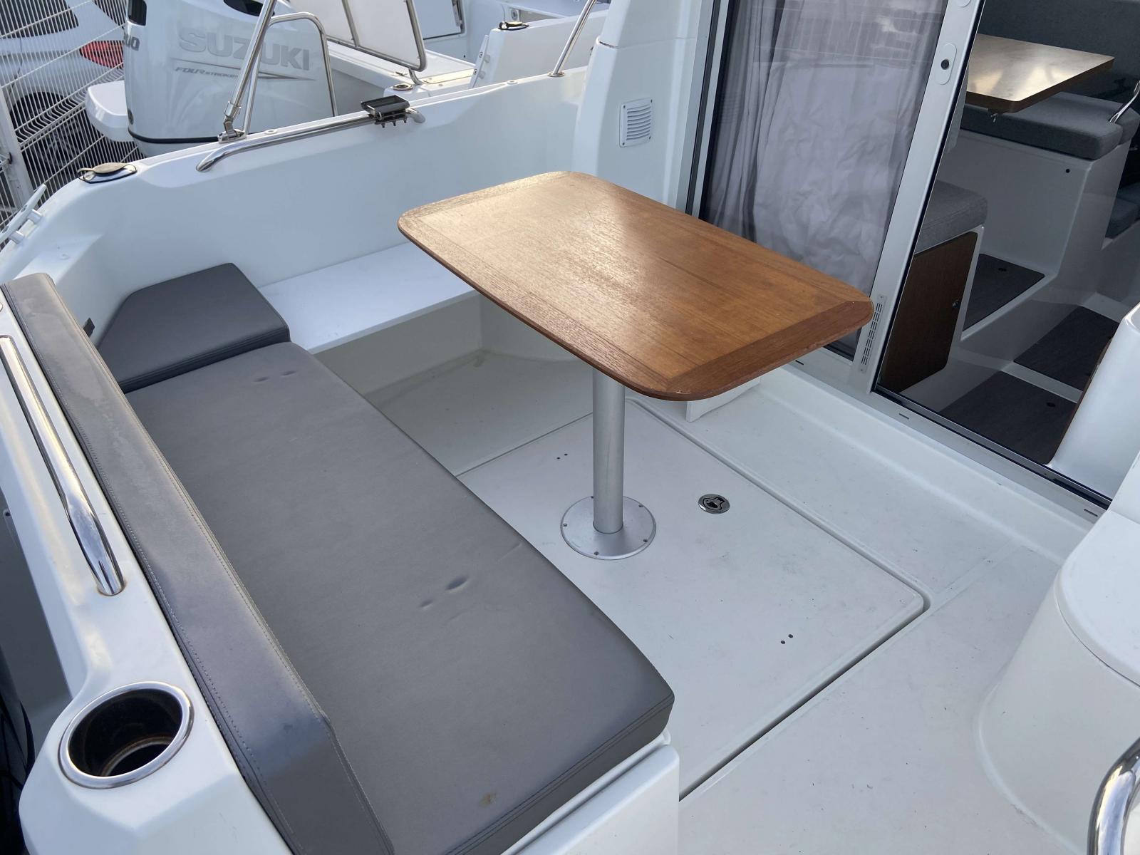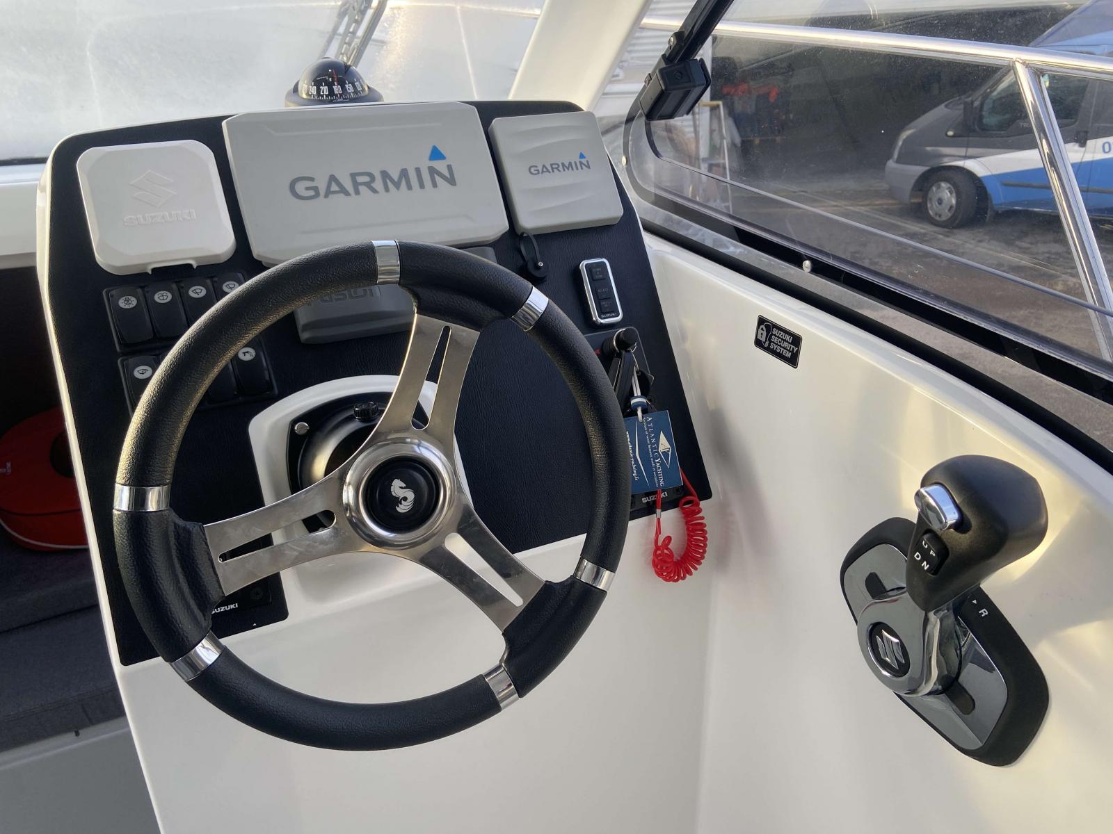 Equipement: Finition Comfort, Circuit d'eau complet avec WC Marin, système d'eau WC et cuisine, douchette de cockpit 50L, GPS Sondeur Garmin Echomap 7 pouces timonerie et Helix 9 Humminbird extérieur, pack sound Fusion, Pilote automatique Garmin, Taud de soleil, plateformes de bain, propulseur d'étrave, pompe de lavage de pont, réchaud gaz fixe, réfrigérateur et 2eme batterie, complément couchage dans le carré, armement de sécurité côtier 6 personnes, Kit mouillage complet, amarres et pare-battages.