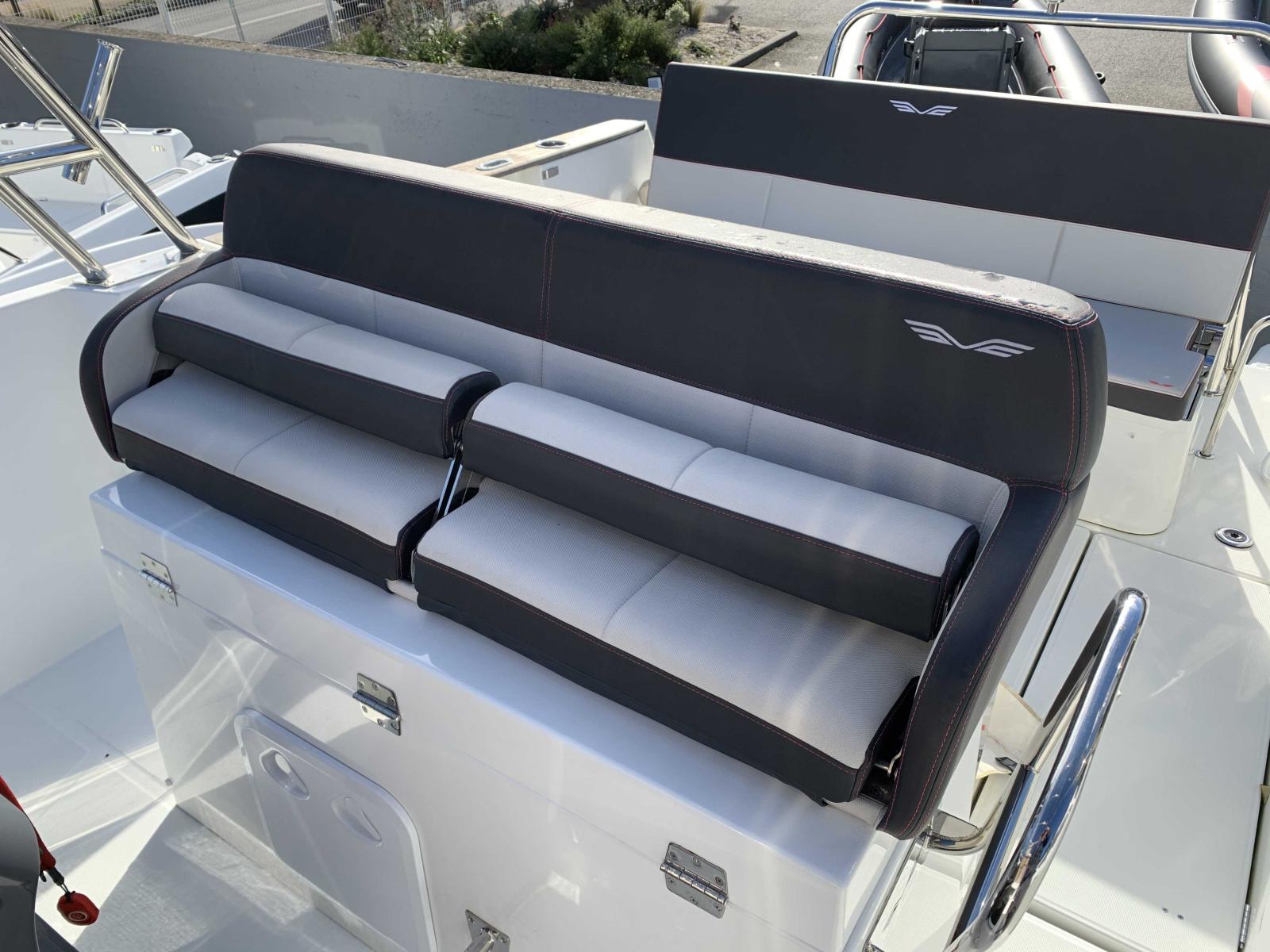 2 banquettes cockpit laterales repliables, TTop Inox, Plateformes de bain polyester, Flaps electriques, Housse console + leaning post + salon avant + banquette de cockpit, Propulseur d'etrave, Chauffe-eau 25l ( sur 220v ), Wc marin avec reservoir a eaux noires, Mat de ski nautique wake board, Extension de bain de soleil avant, Vhf fixe dsc. Coussins de cabine.