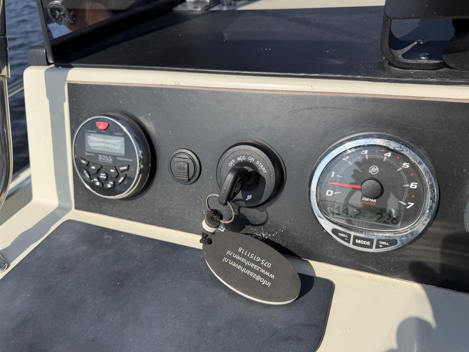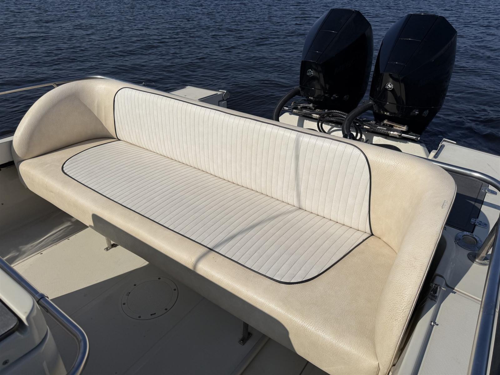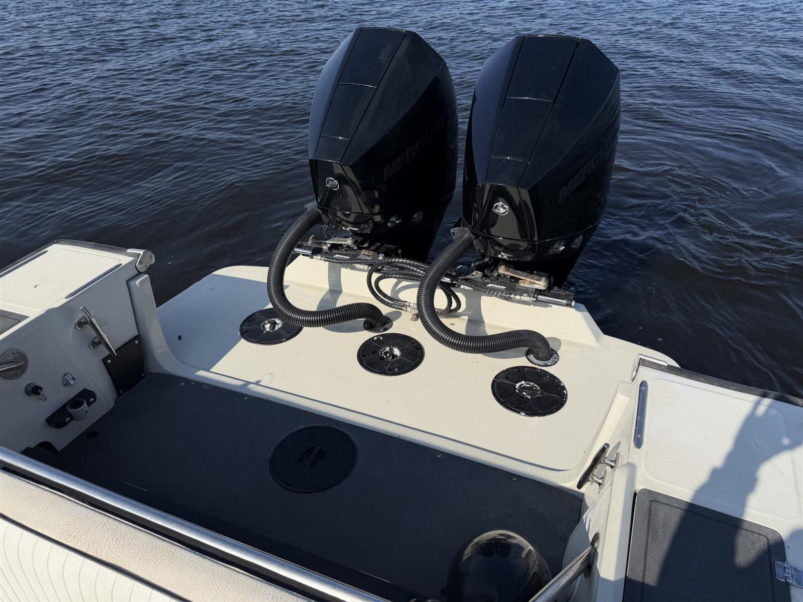 • Propulsé par deux moteurs Mercury de 225 ch, seulement 127 heures d’utilisation
