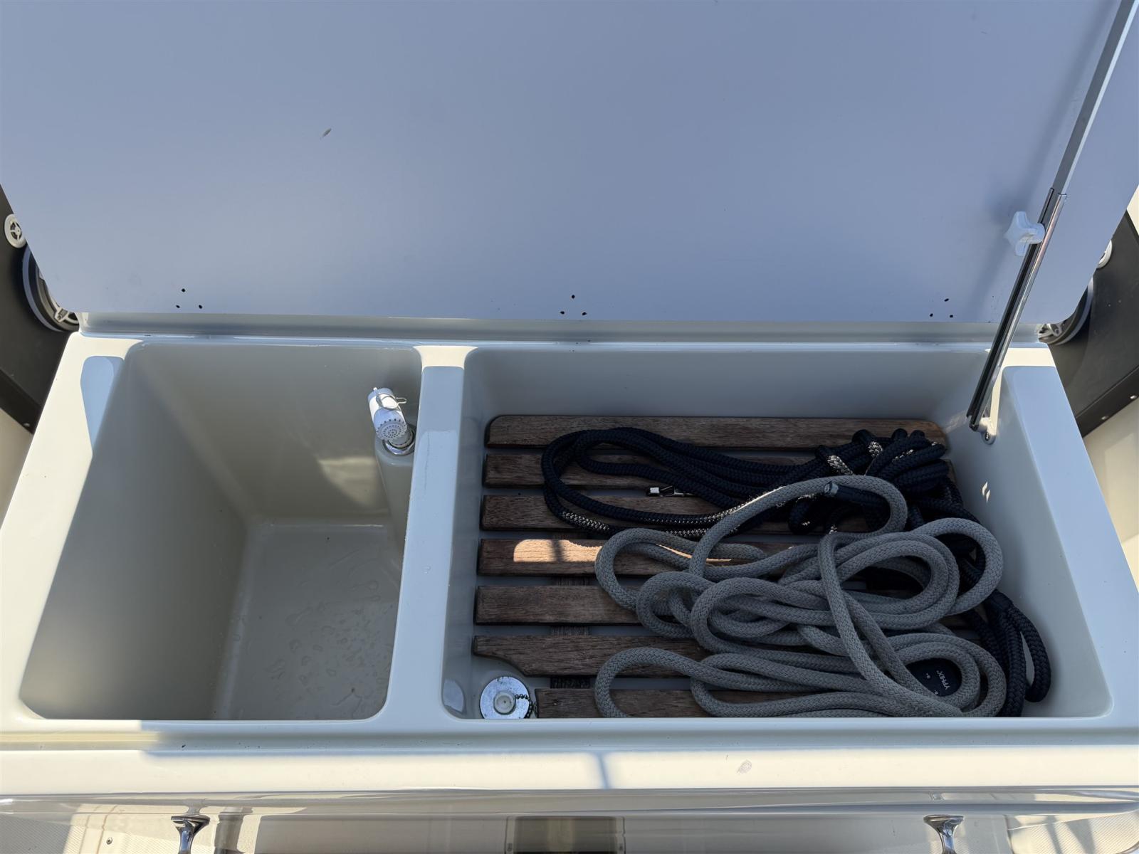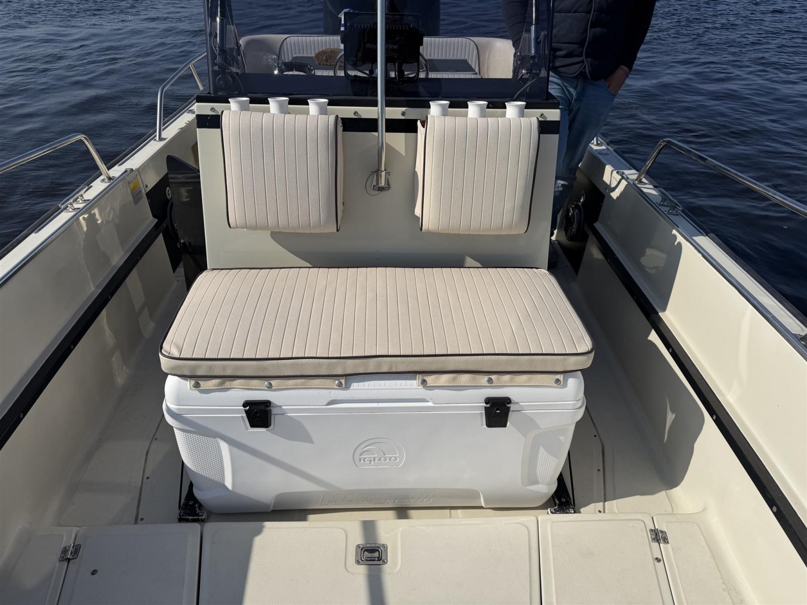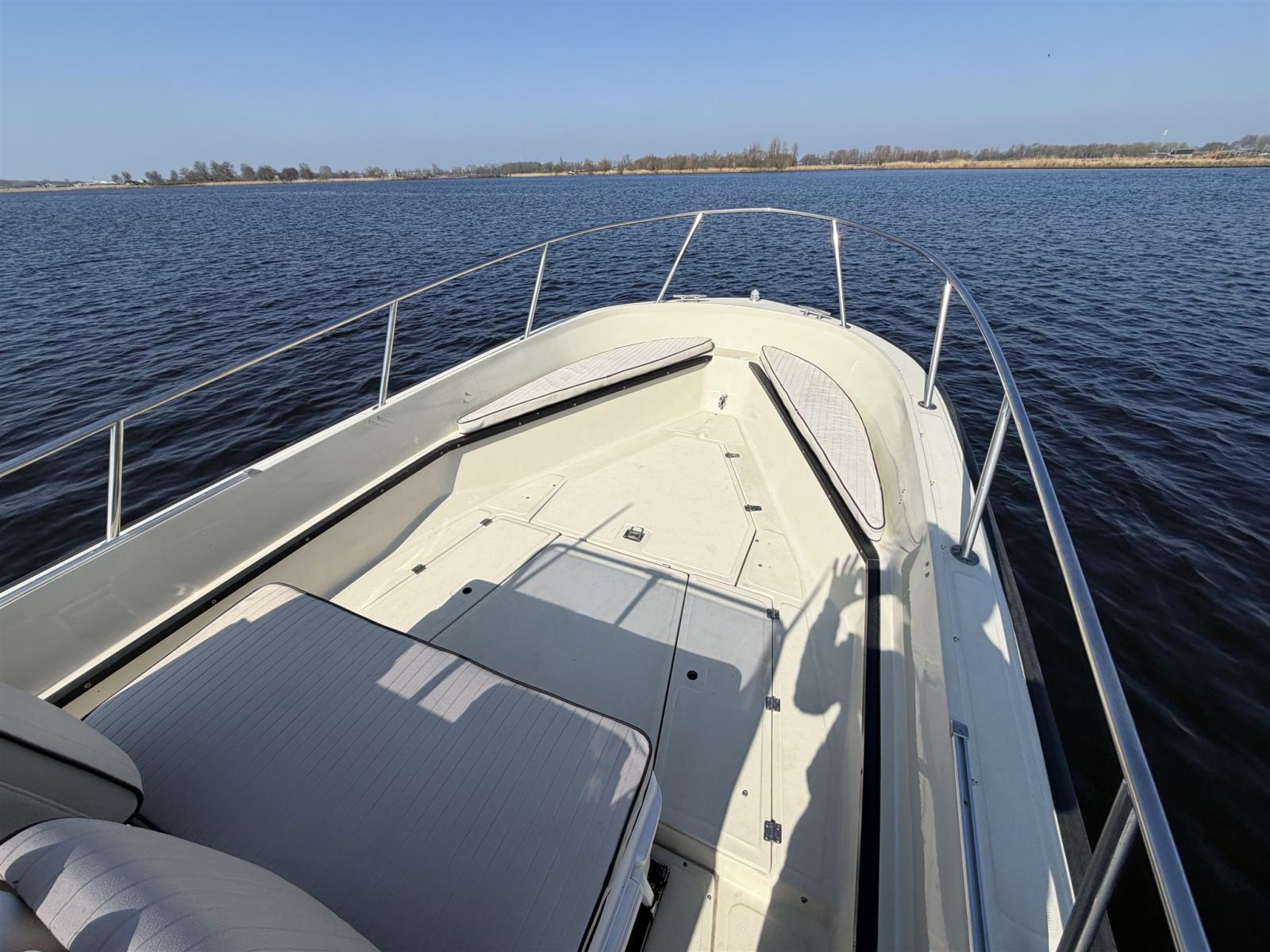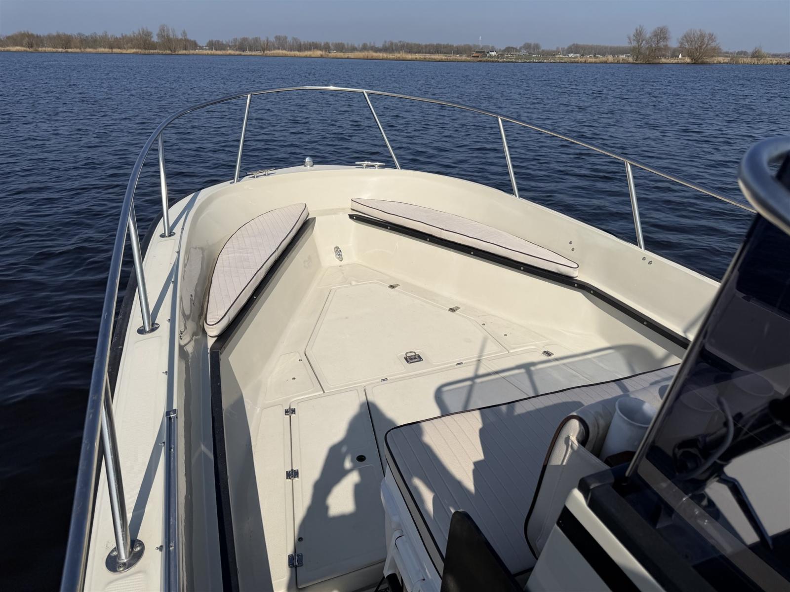 L’aménagement est pratique et spacieux, idéal pour une croisière confortable en journée, des sports nautiques, la pêche ou des journées détentes en famille et entre amis. En même temps, il offre la conduite solide et assurée pour laquelle le Boston Whaler est connu.