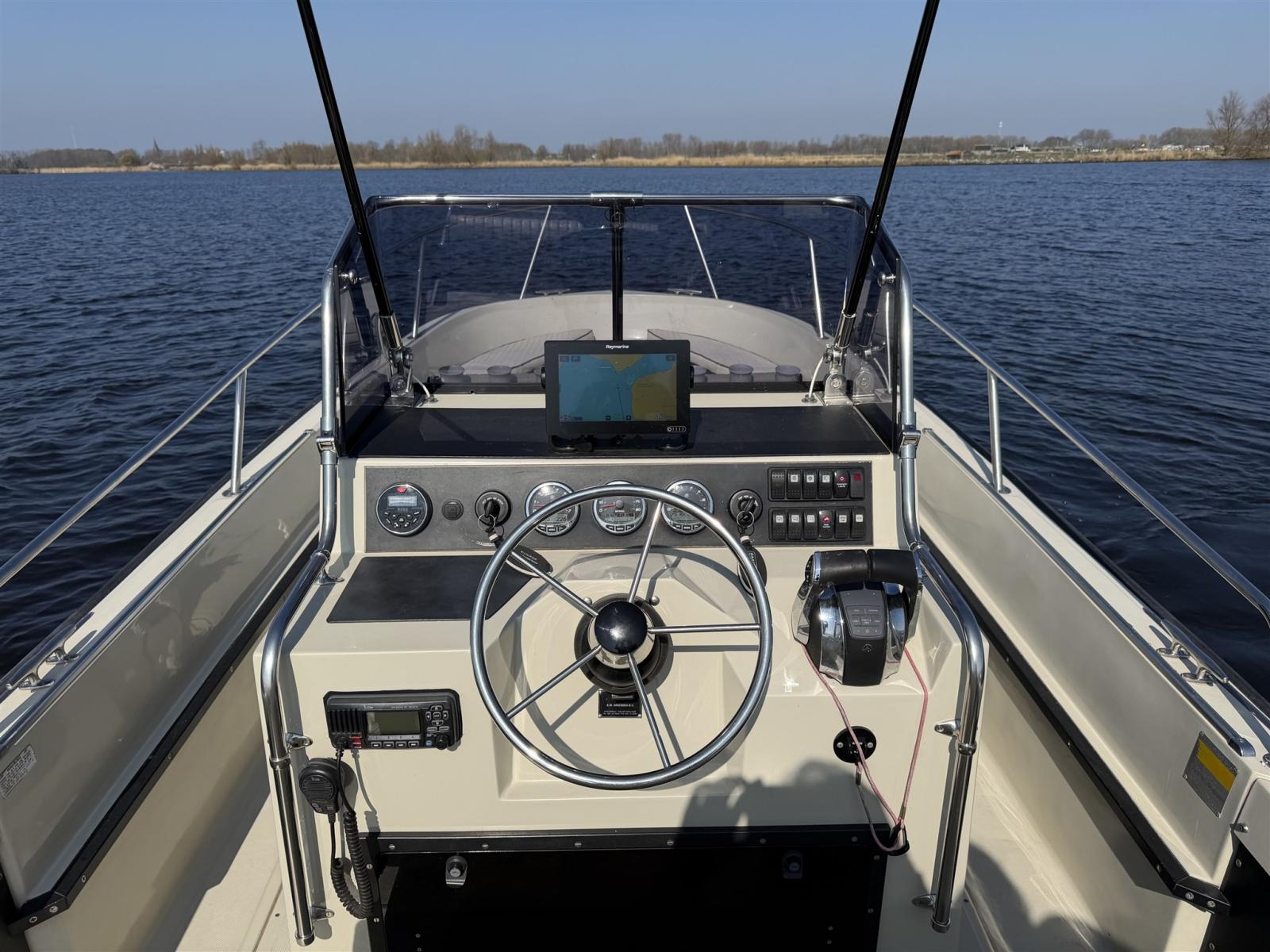 Commande électrique, Moniteur, Cartes et guides, Lecteur de cartes (Raymarine), Panneau de commande, Radio VHF (Icom), Sondeur.