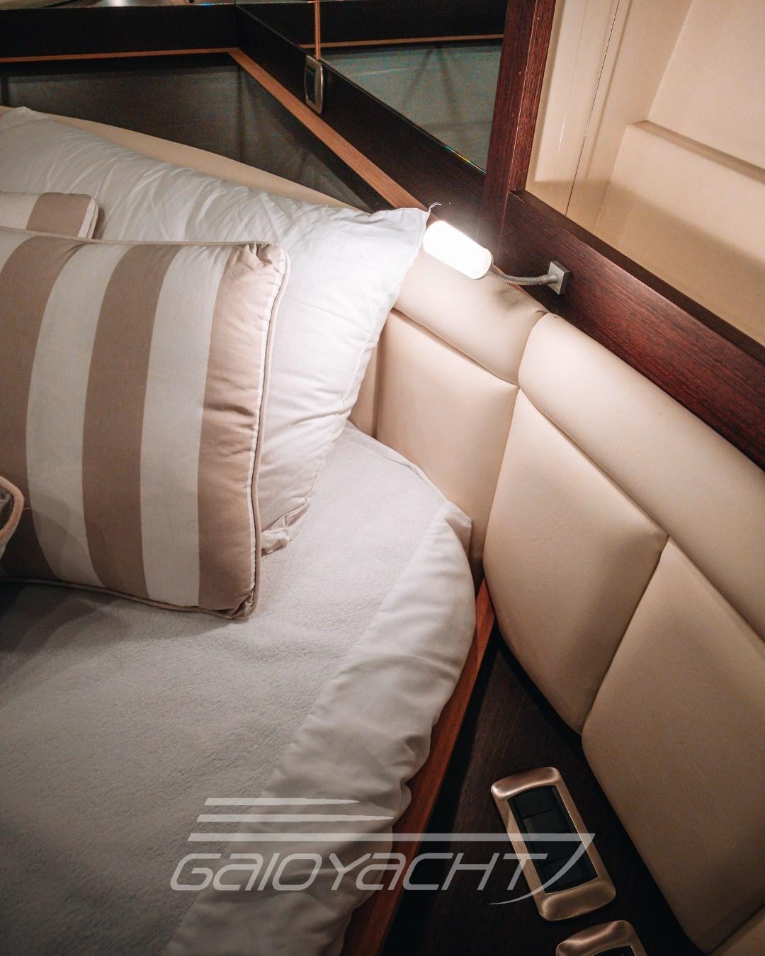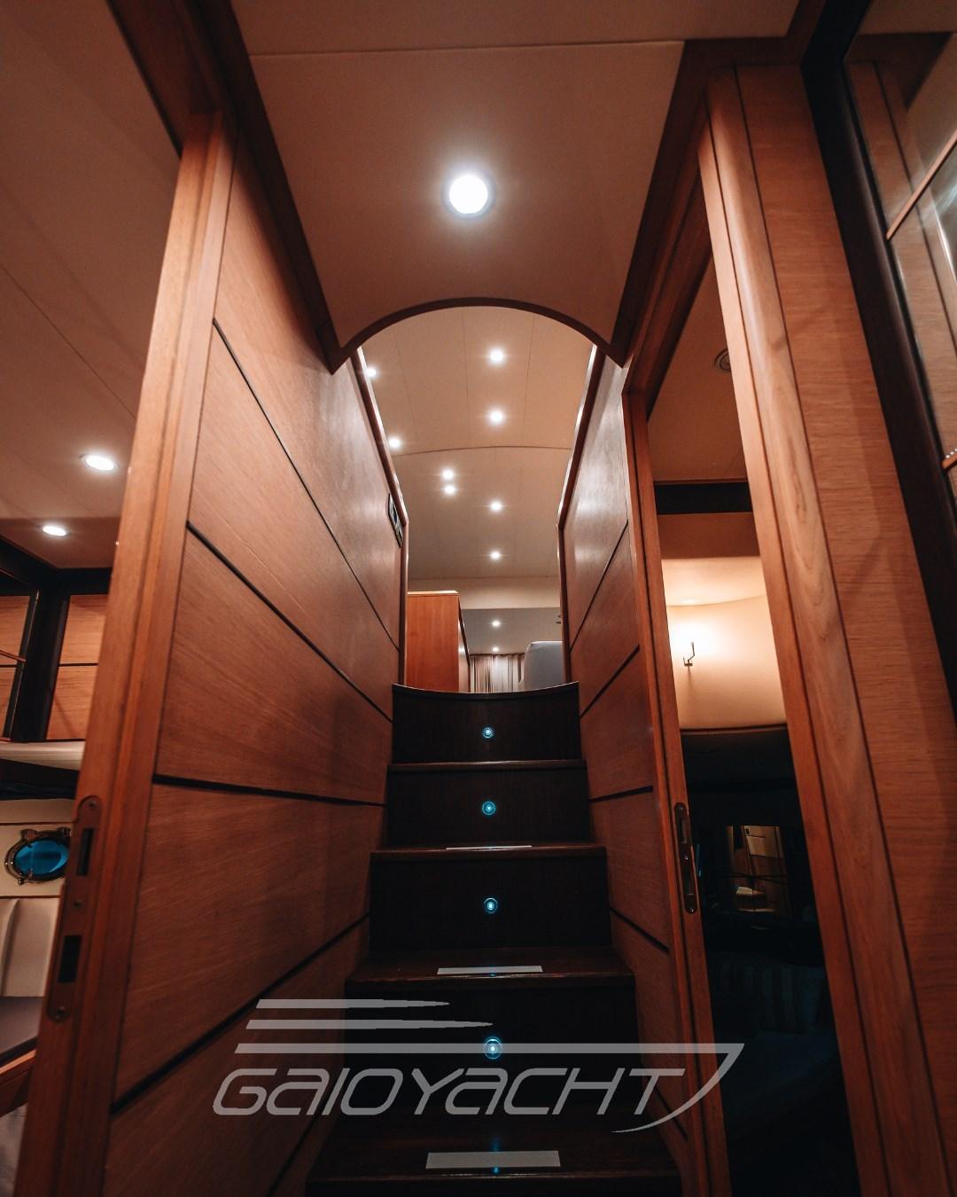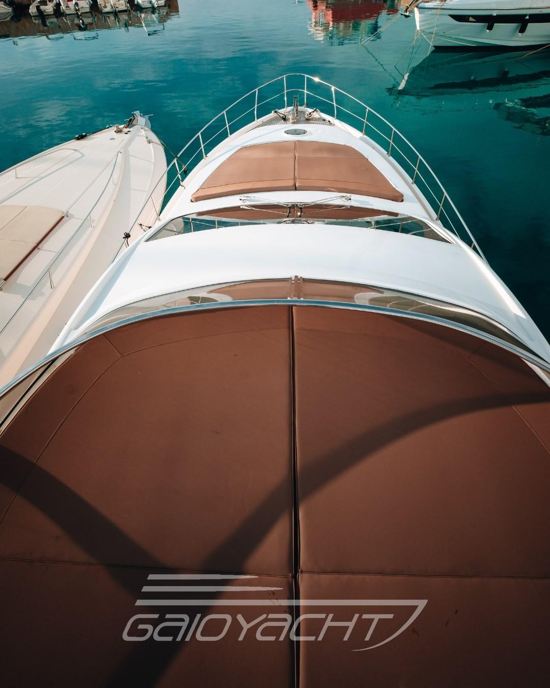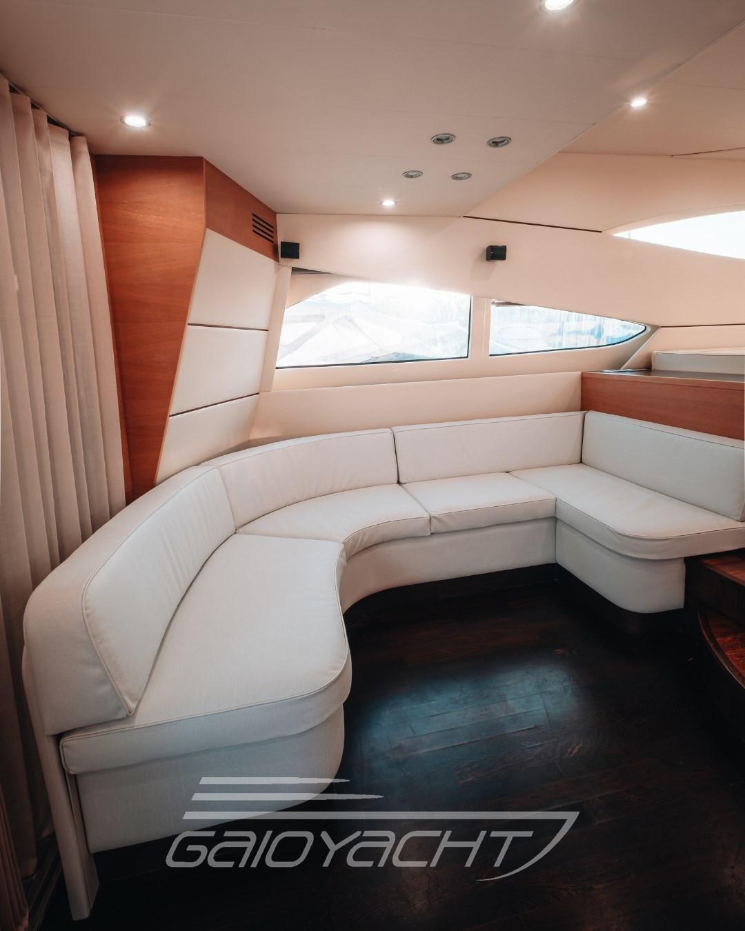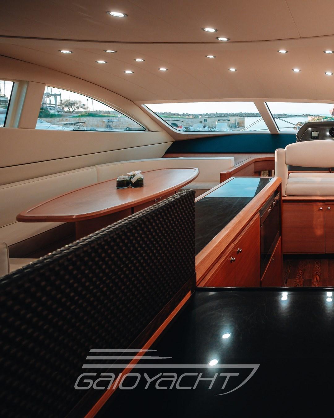 Alarme gaz, Alarme moteur, Alarme de pompe de cale, Ancre (Da sostituire), Ouverture du compartiment moteur électrique, Auto Dynamic Trim Interceptor, Eau sous pression, Trim hydraulique, Passavant en teck, Douche de cockpit, Double barre à roue, Phare de poursuite, Flaps électriques, Bossoirs, Bossoirs pour annexe, Extincteur(s) fixe(s), Indicateurs de flaps, Éclairage de courtoisie, Passerelle, Plateforme arrière, Pompe de Vidange du Réservoir d’Eaux Usées, Porte latérale, Porte latérale, Cockpit en teck, Prise de quai, Connexion eau sous pression à quai, Répétiteur électronique, Guindeau Hydraulique, Echelle de bain, Selles pour Annexe (Predisposizione), table de cockpit, Corne, Pont en teck, Winch électrique arrière.