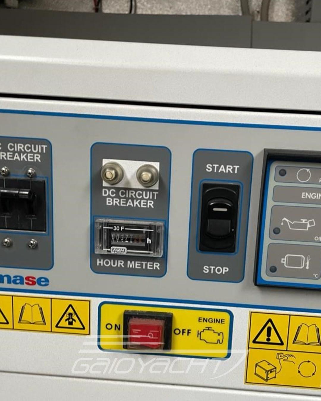 Ouverture du compartiment moteur électrique, Eau sous pression, 5 Batteries (2 batterie servizi, 2 batterie motori, 1 batteria elica di prua), Douche de cockpit, Phare de poursuite, Garage à annexe, Hard top (Elettrico), Extincteur(s) fixe(s) (Sala motori), Lavabo dans le cockpit, Éclairage de courtoisie, Spots sous-marins, Passerelle (Telescopica), Porte latérale, Cockpit en teck, Prise de quai, Connexion eau sous pression à quai, Guindeau électrique, Echelle de bain, Selles pour Annexe, table de cockpit, Table pliante de salon, Annexe (Motore Yamaha hp15).