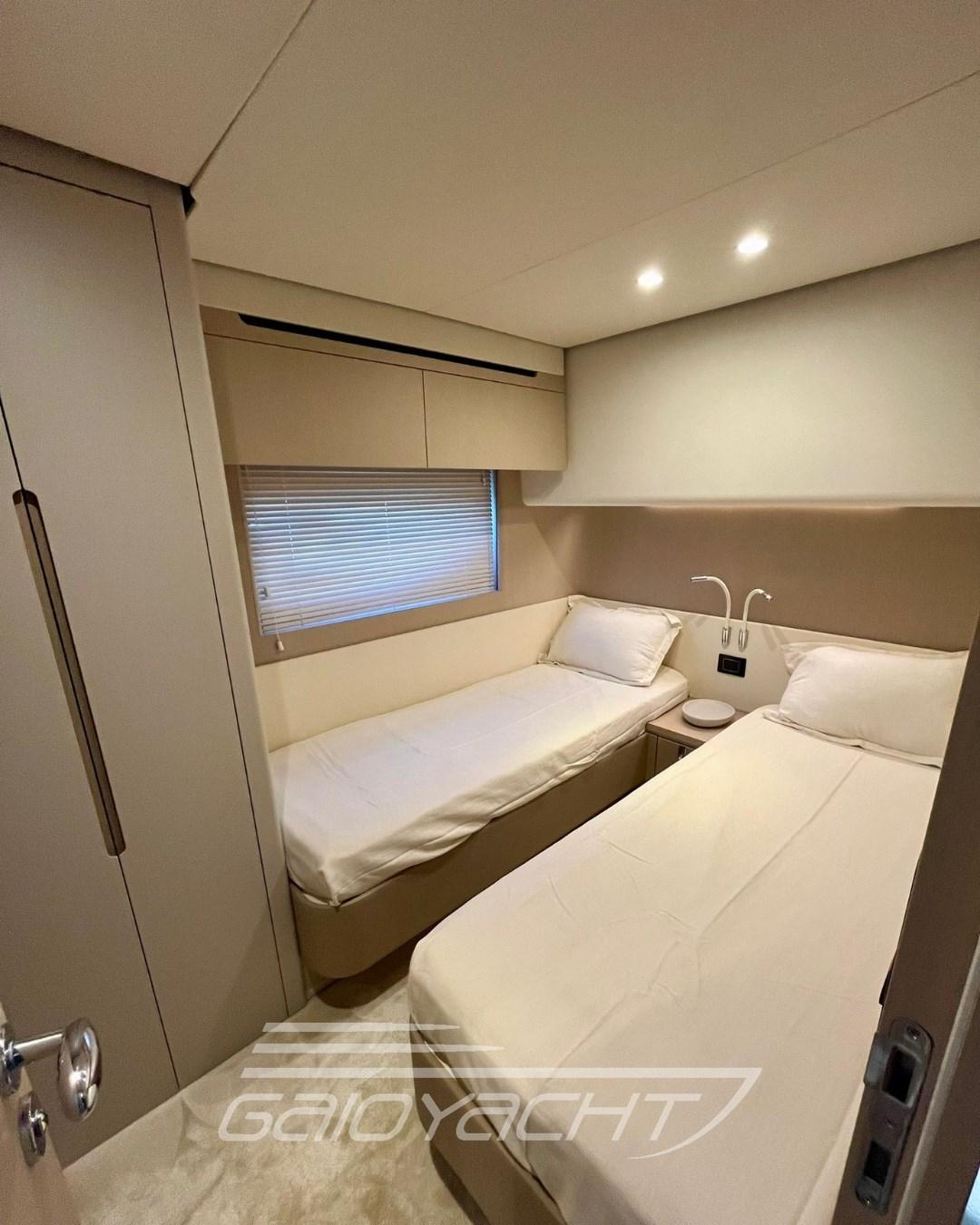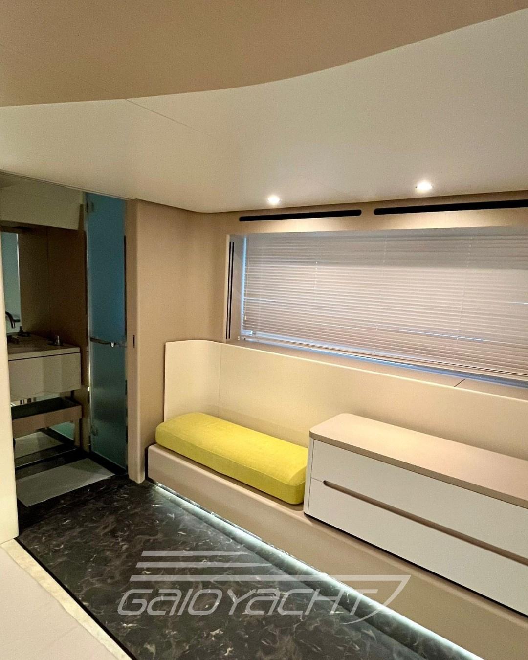 Store enrouleur électrique dans le cockpit ; Table d’étrave supplémentaire en teck ; Dessus de vanité en quartzite dans toutes les salles de bains ; Ensemble Garmin Gold ; système Volvo Interceptor ; Filtre racor pour générateur ; Prédisposition pour le dessalinisateur ; Isolateur galvanique ; Teck à la volée et à l’avant.
