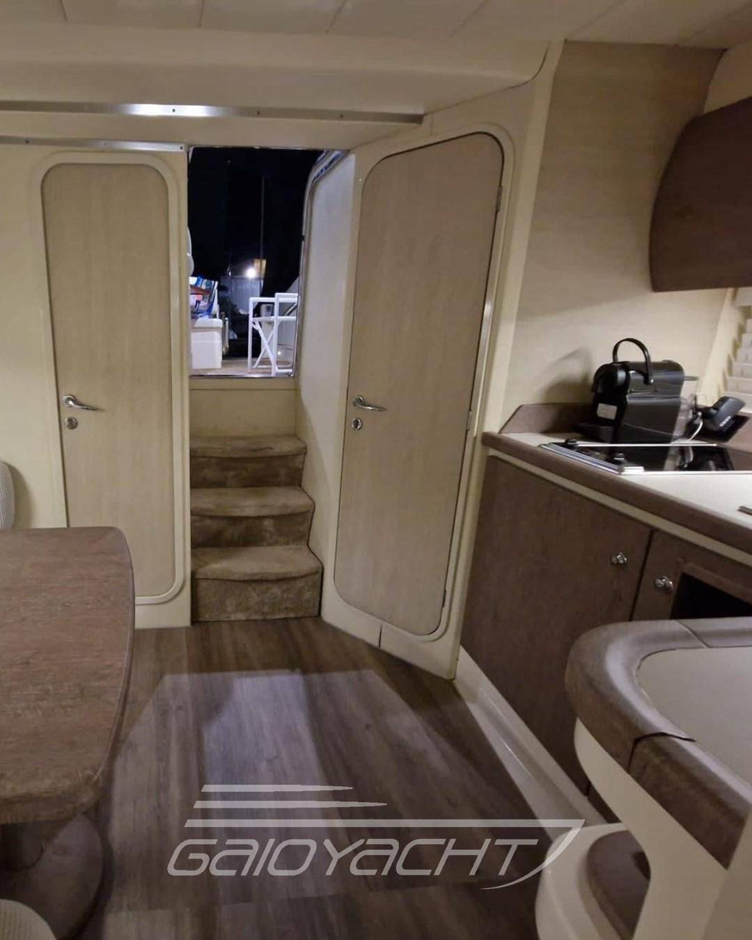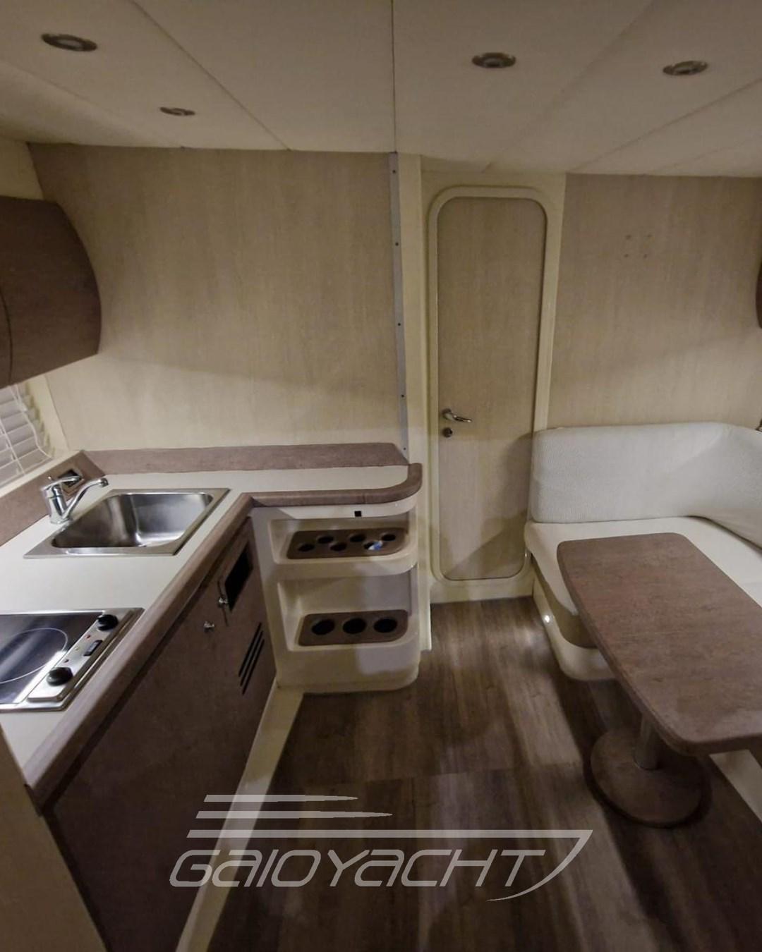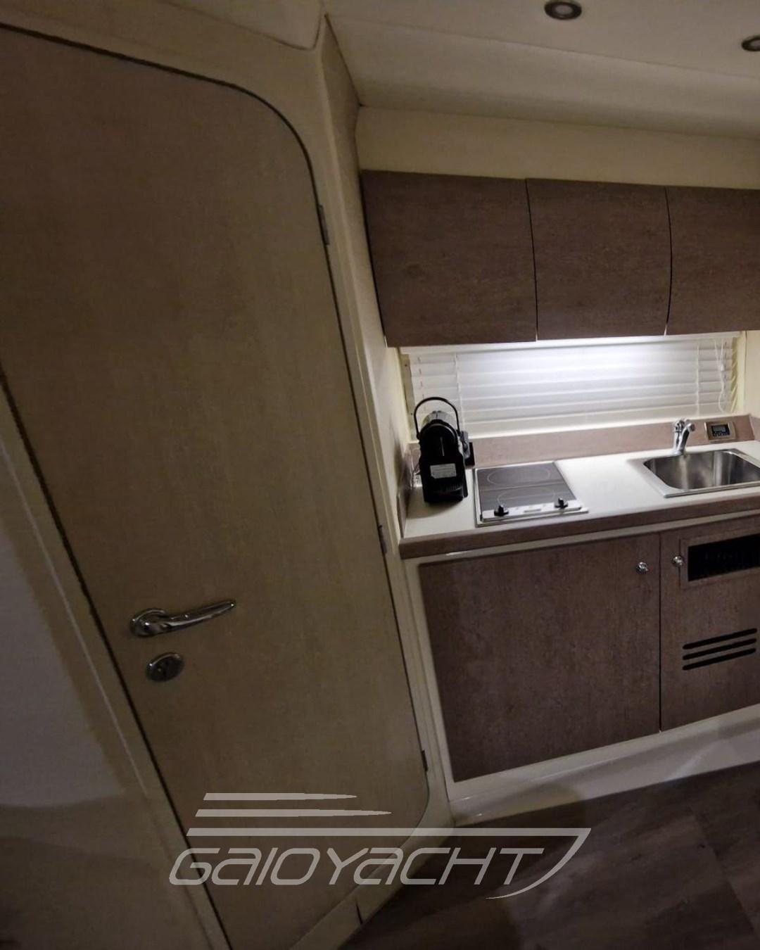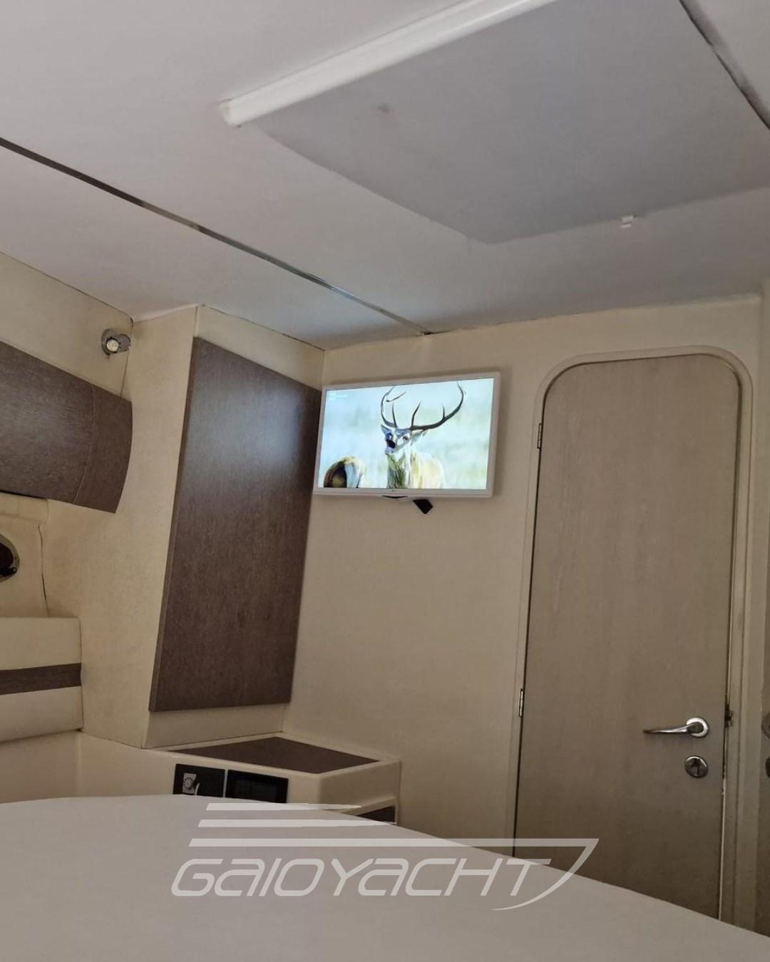 Volets; Menottes électriques ; Instrumentation embarquée Volvo Penta complète ; kitchenette à induction externe (cockpit) avec deux brûleurs et évier pratique ; Armoire de cuisine externe (cockpit) ; Réfrigérateur double ; Plaque de cuisine dinette à induction avec deux brûleurs ; système de télévision dans le cockpit et avec télévision dans la chambre du propriétaire ; Radio Hi-Fi.