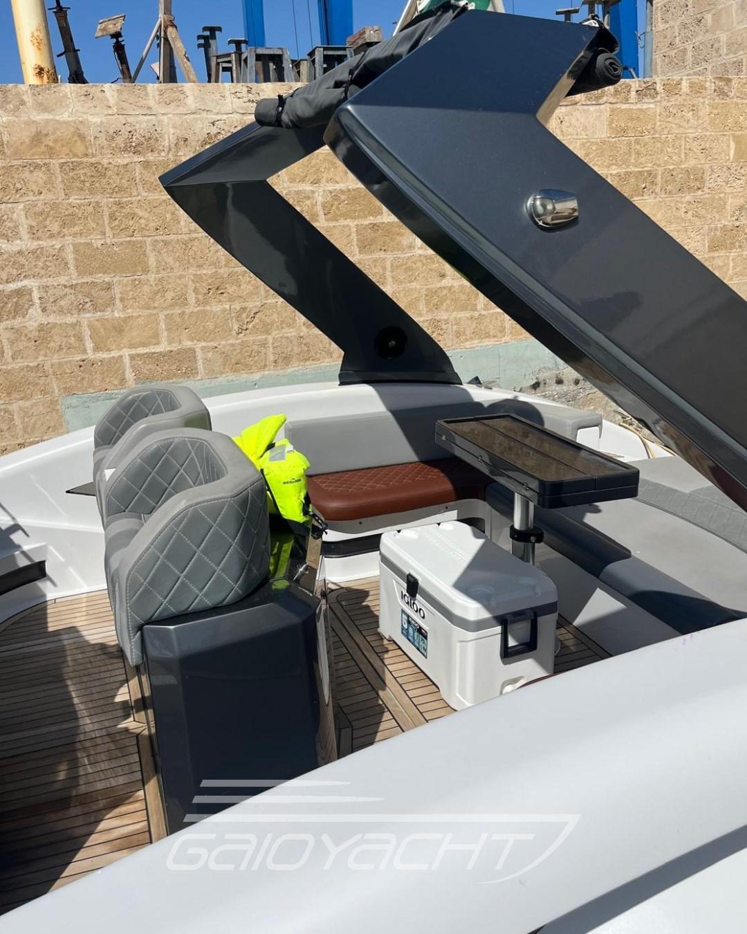 Menottes électroniques et synchronisées ; Volets hydrauliques ; Groupe électrogène ; Indicateurs de volets ; LED du tableau arrière ; Cale triple avec pompe centrale de cale automatique ; Grand canapé avec table de cockpit ; Chaise Longue; plaque de cuisson externe ; Couverture hivernale complète ; Système audio ; Hublots intérieurs à infini sur l’eau.