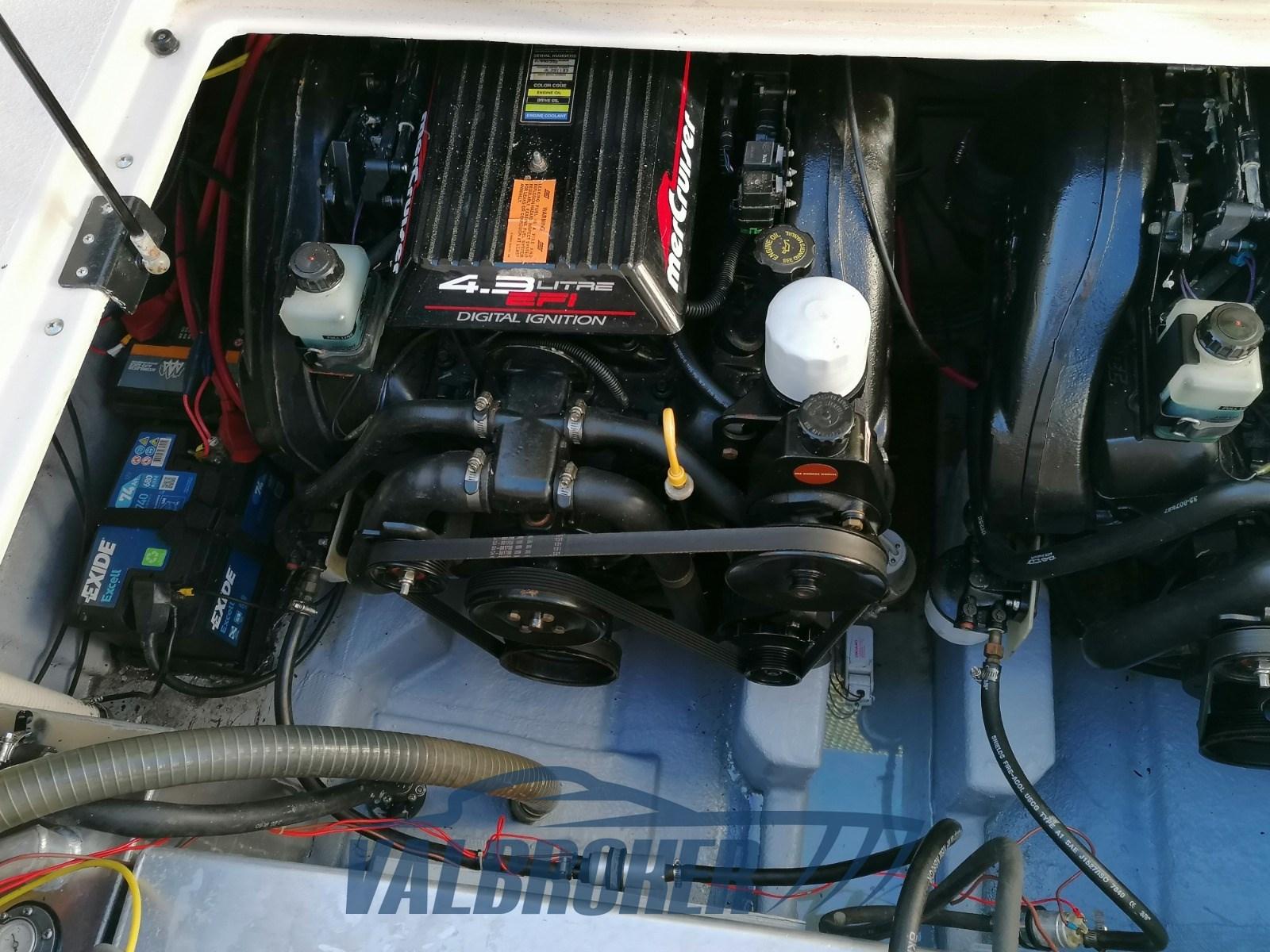 Cabin cruiser polyvalent équipé de 2 moteurs Mercruiser 4.3 EFI de 220 CV avec seulement quelques heures de vol.