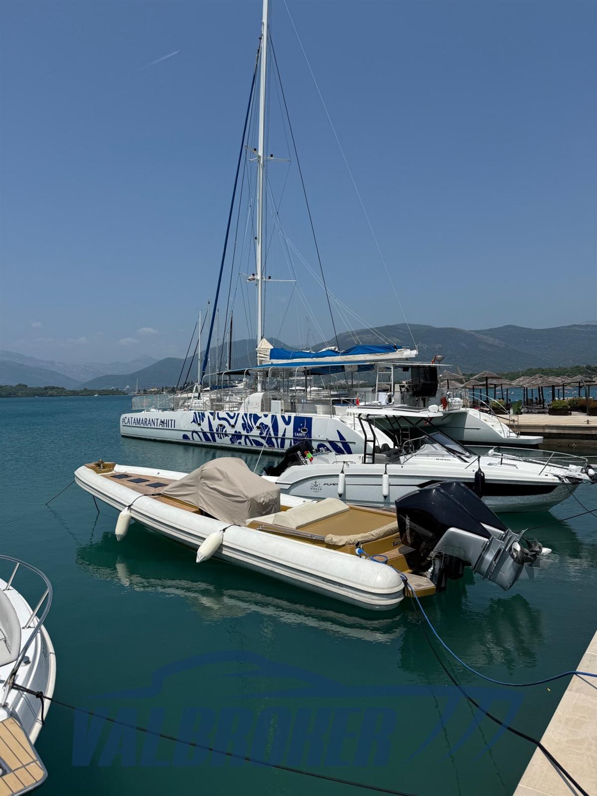 Main courante en acier inoxydable, Mât de drapeau, Panneau de commande avec interrupteurs, Bornes en acier inoxydable pour défenses, Meubles de cabine en bois, Trappe de cabine en aluminium, Coussins de cabine, Pompe à eau, Taquets d’amarrage, Gonfleur électrique 12V