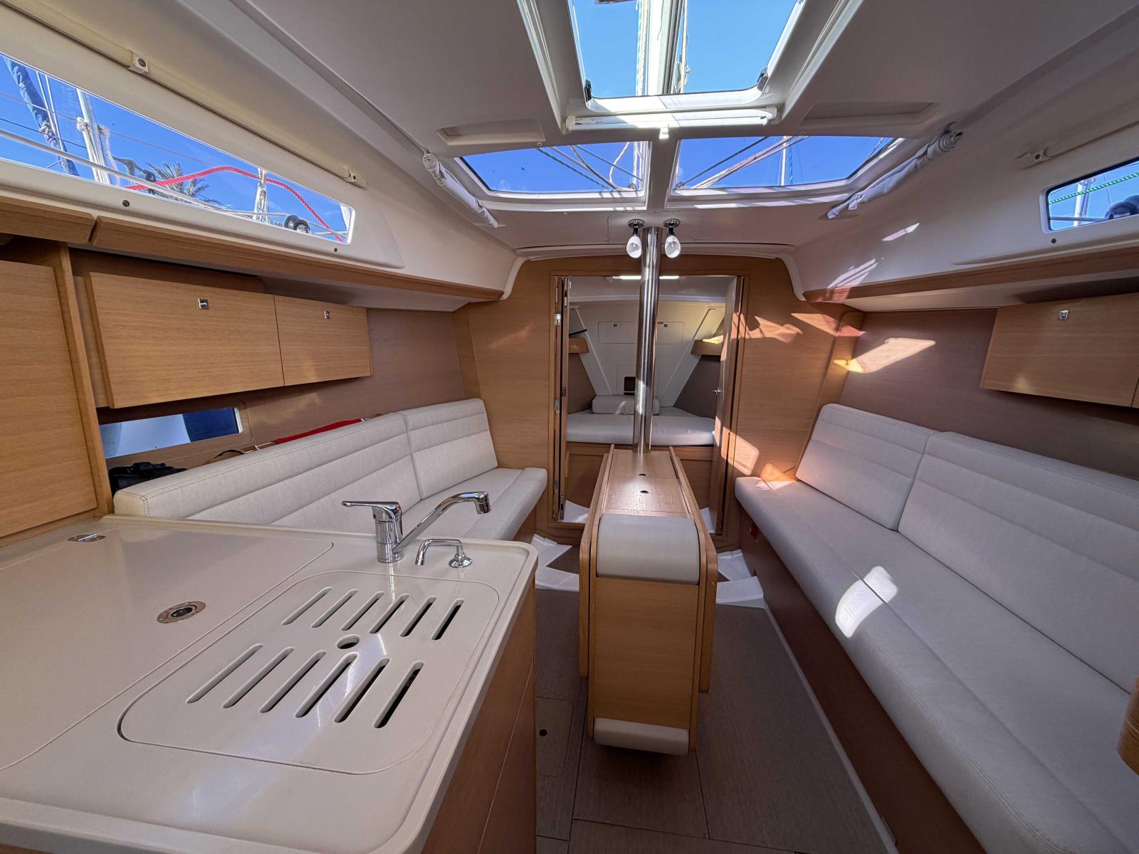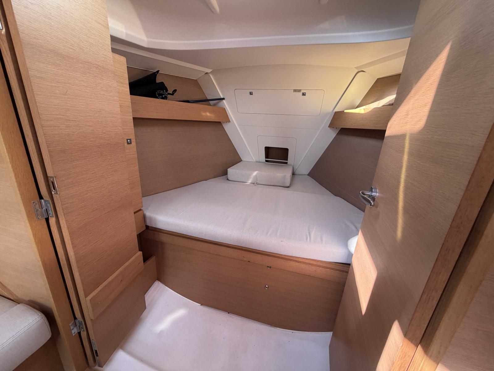 À bord, vous profitez d’un volume étonnamment généreux, subtilement agencé, presque surprenant pour un bateau de cette catégorie. Nous mettons en avant sa construction robuste, sa carène moderne, gages de stabilité et de tranquillité en mer.