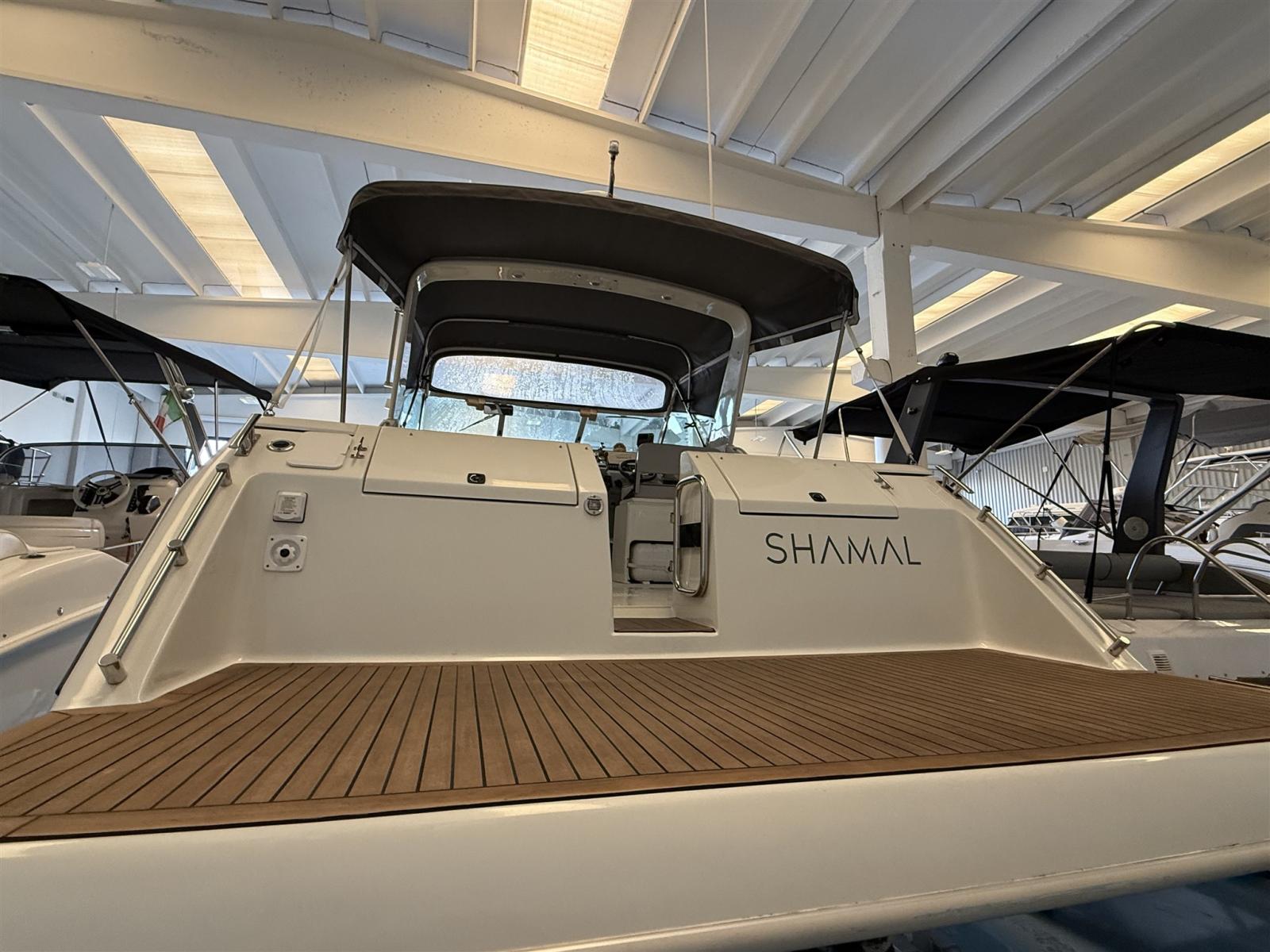 Alarme moteur, Eau sous pression, Douche de cockpit, Flaps hydrauliques, Plateforme arrière (in flexiteak), Prise de quai, Rollbar, Guindeau électrique, Echelle de bain, Corne.
