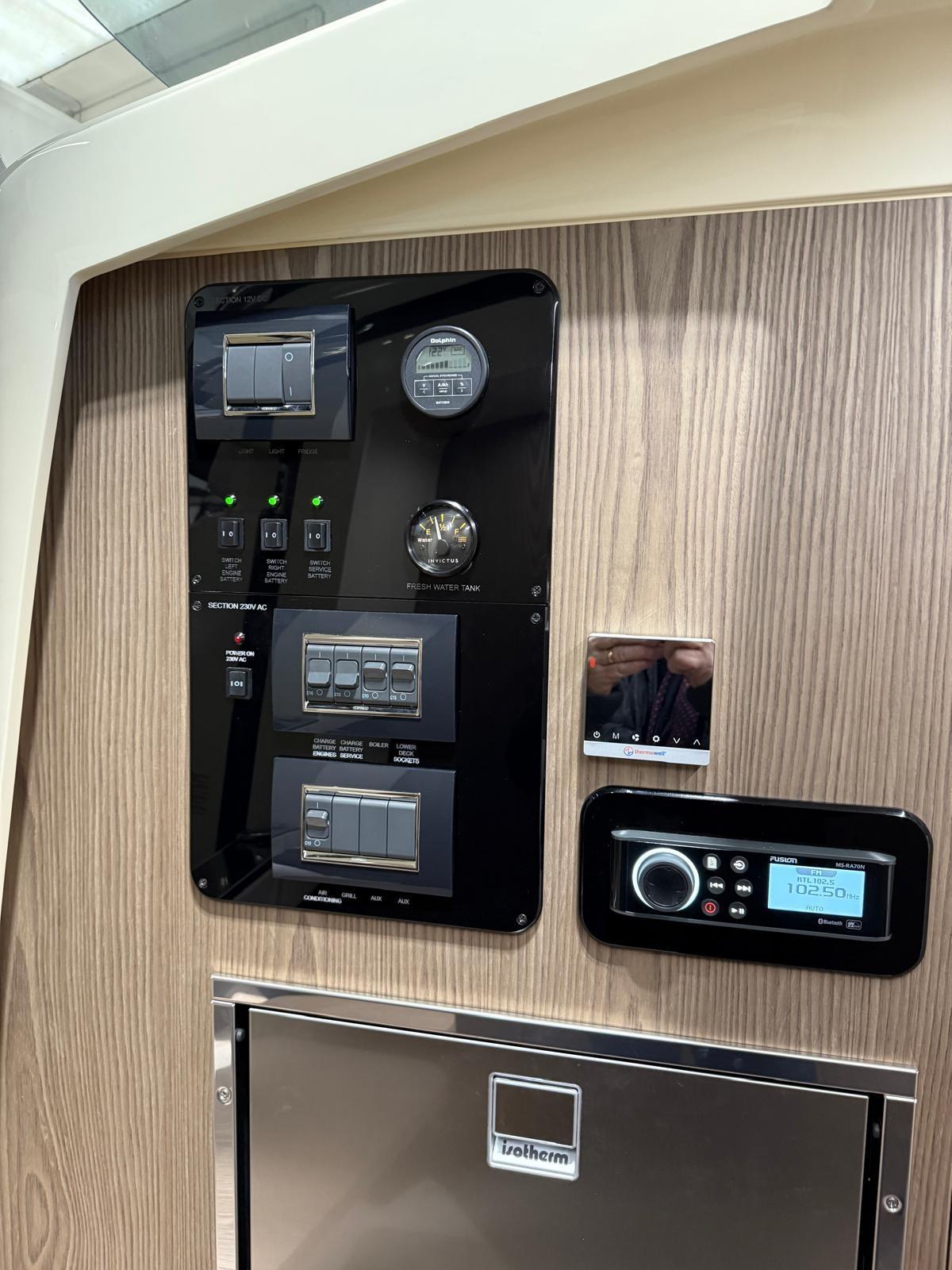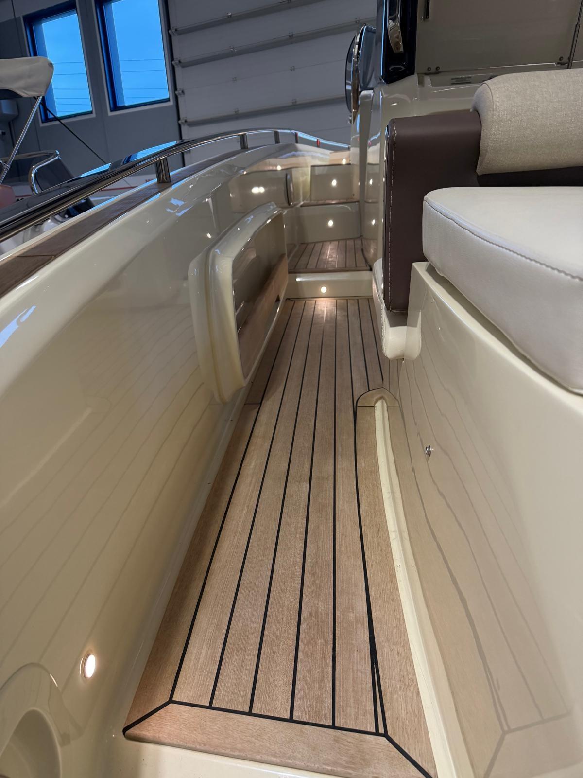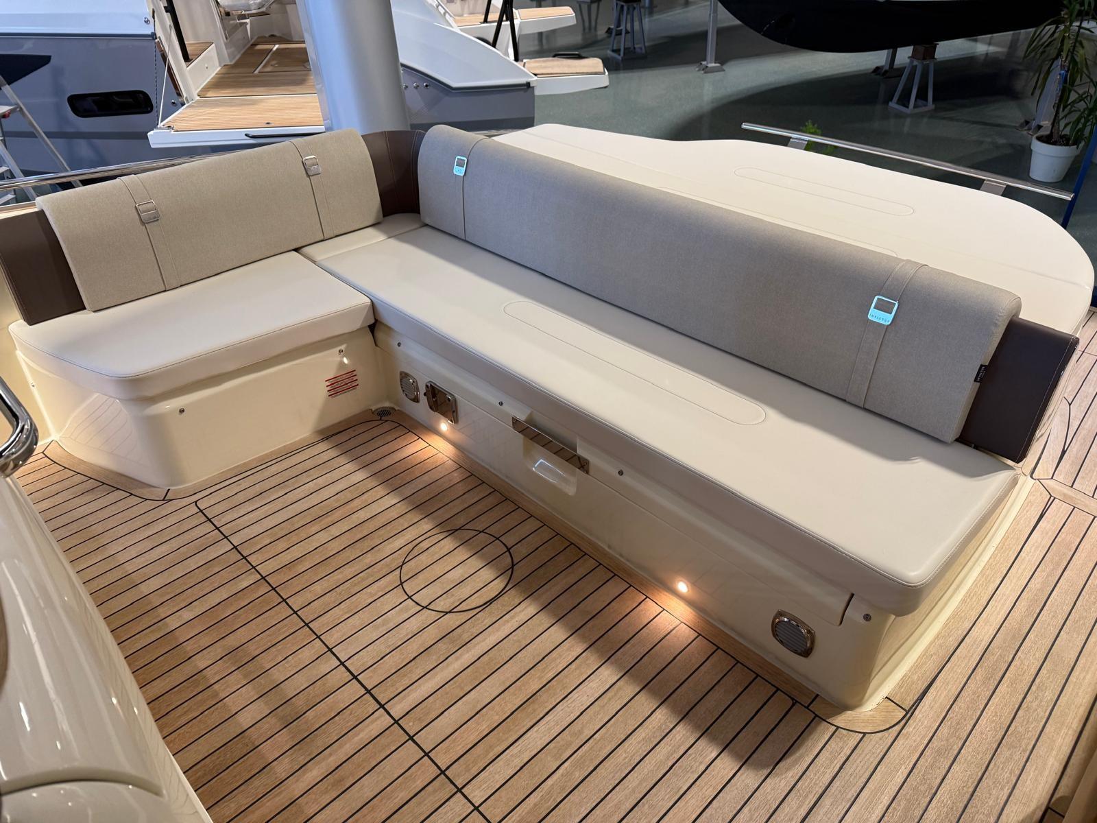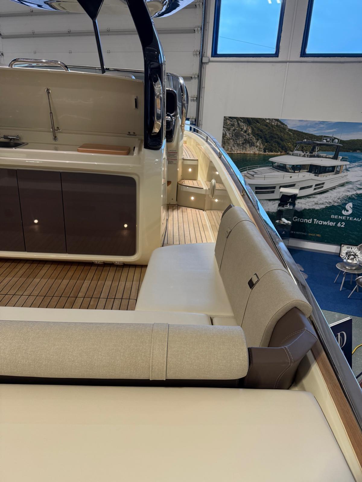 Alarme moteur, Eau sous pression, Passavant en teck, Couleur spéciale (WILD BRONZE), Douche de cockpit, Flaps électriques, Hard top, Extincteur(s) fixe(s), Indicateurs de flaps, Lavabo dans le cockpit, Éclairage de courtoisie, Plateforme arrière, Pompe de cale automatique, Cockpit en teck, Prise de quai, Guindeau électrique, Echelle de bain, table de cockpit, Corne.