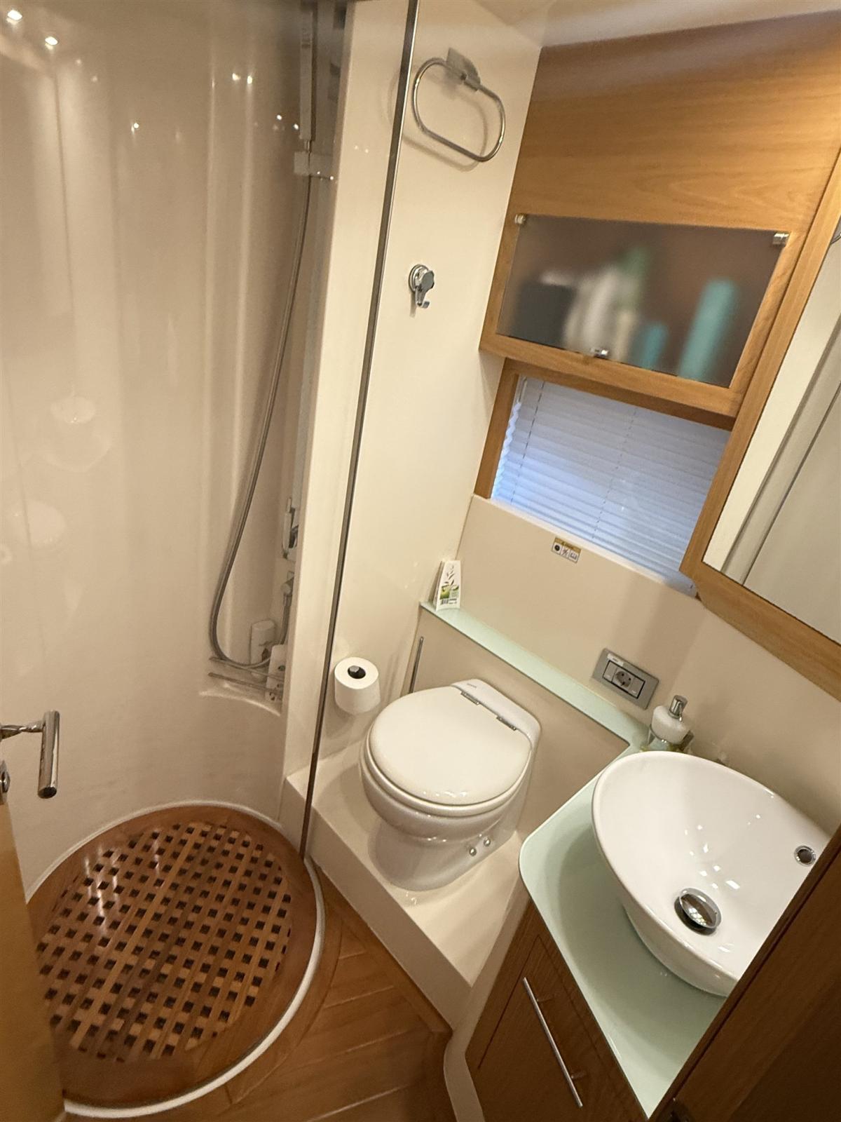 Ballon d'eau chaude, Cuve à eaux noires, Prises interieures 12v, Prises interieures 220v, 2 Toilettes électriques.