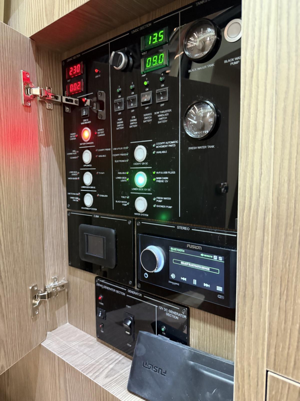 Indicateur d'angle de barre, Commande électrique, Ordinateur fixe de bord, Joystick, 2 Plotter GPS (16 pollici), Siège copilote.