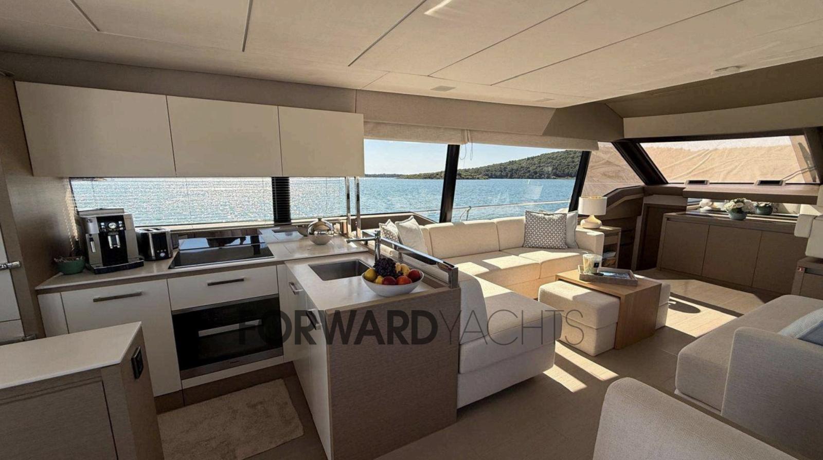 Le Prestige 680 Fly, est un élégant yacht à flybridge de 2019 construit par Jeanneau / Prestige en France.