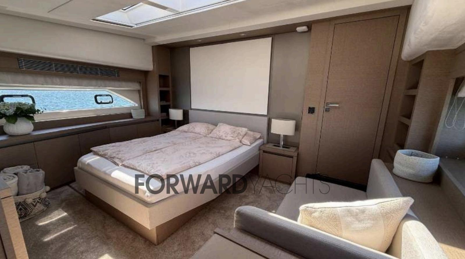 Le yacht dispose de quatre cabines spacieuses avec salle de bains privative et d’une cabine d’équipage indépendante, assurant confort et intimité à tous les invités à bord. Les espaces extérieurs, du flybridge panoramique au cockpit en passant par le bain de soleil à l’avant, vous invitent à découvrir la mer à tout moment de la journée.