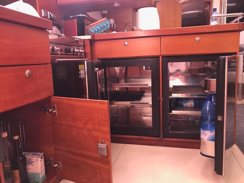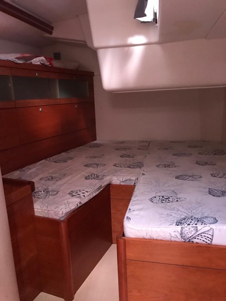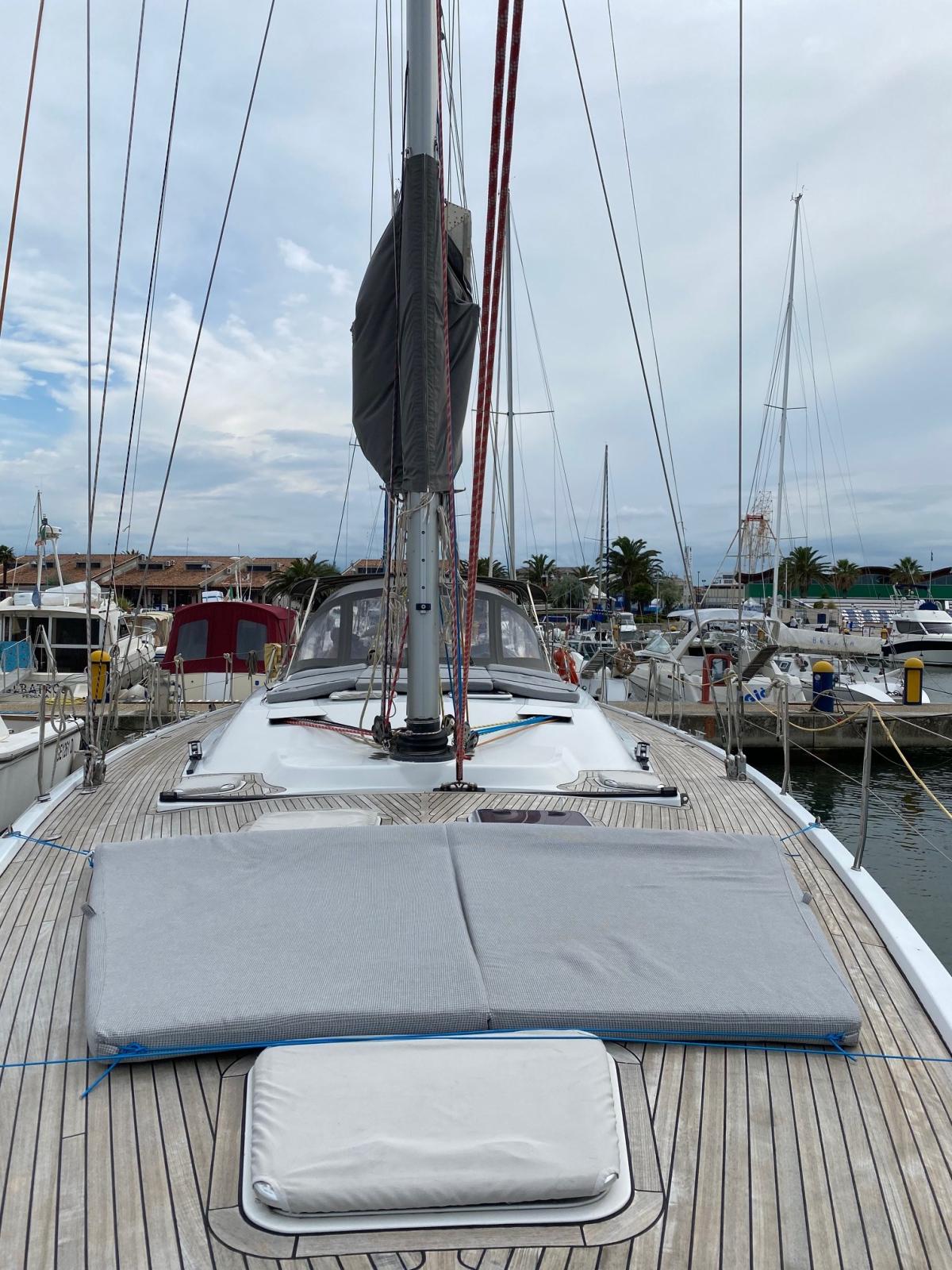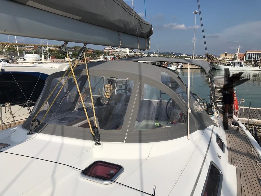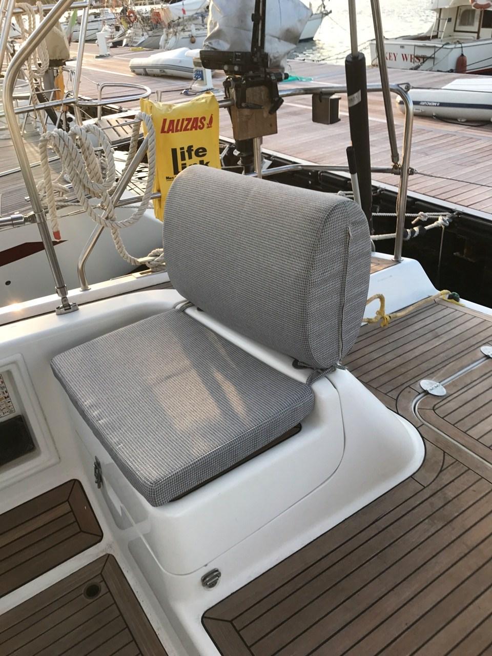 Alarme moteur, Eau sous pression, Douche de cockpit, Plateforme arrière, Pompe de cale manuelle, Cockpit en teck, Onduleur, Guindeau électrique.