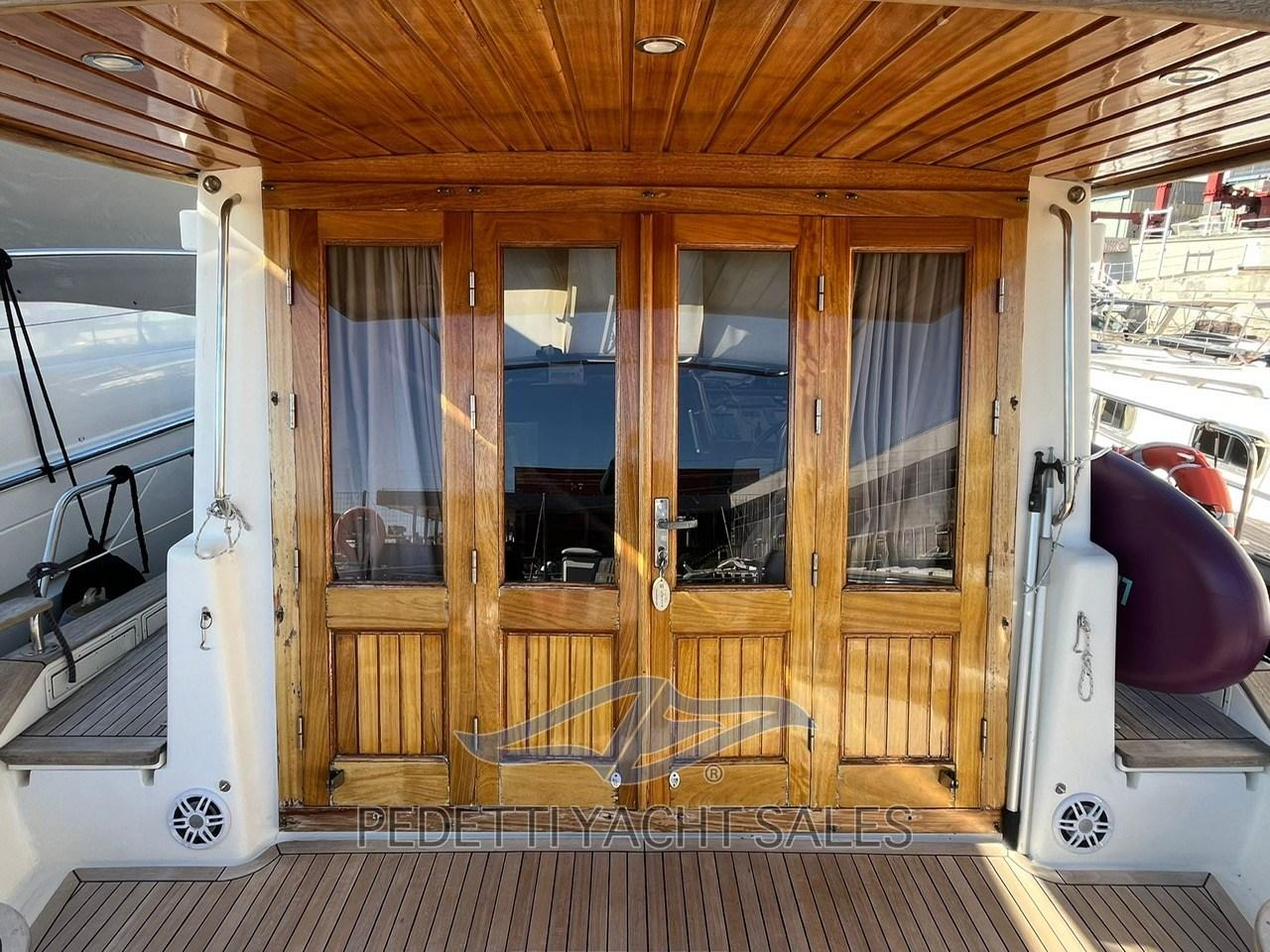 Alarme gaz, Alarme moteur, Alarme de pompe de cale, Ancre (inox), Eau sous pression, 5 Batteries, Passavant en teck, 2 Chargeur de batterie, Câble d’alimentation à quai, Douche de cockpit, Phare de poursuite, Extincteur(s) fixe(s) (sala macchine), 2 Panneau solaire, 6 Défenses, Passerelle (idraulica), Plateforme arrière, 2 Pompe de cale électrique, Pont en teck, Cockpit en teck, Prise de quai, Guindeau électrique, Echelle de bain, Chaise support HB, Filières avec sortie latèrale.