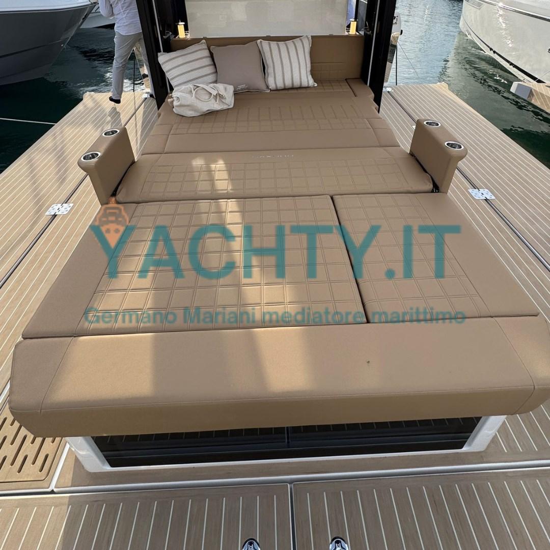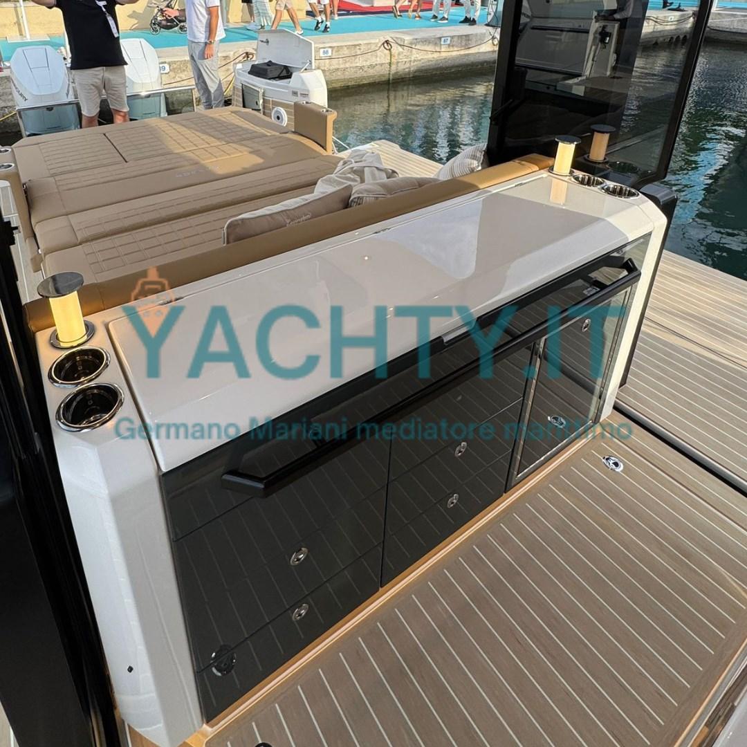 Ancre (VERRICELLO CON 16KG SS ULTRA ANCHOR ( SISTEMA DI SALPA ANCORA A SCOMPARSA )), Eau sous pression, Trim hydraulique (LENCO PRO), Batteries (1X BATTERIA ELICA DI PRUA OPTIMA 1125 MCA,2X STARTER OPTIMA 1000 MCA, 2X DOMESTIC 140AH GEL), Douche de cockpit, Éclairage de courtoisie (LUCI DI COPERTA, LUCI HARD TOP, N.2 LUCI A SCOMPARSA NEL MOBILE BAR), Spots sous-marins, Porte latérale, Cockpit en teck, Prise de quai (SISTEMA MASTERVOLT SHOREPOWER CON CARICABATTERIA DA 100AM, CAVO ALIMENTAZIONE BANCHINA DA 15M), Echelle de bain, table de cockpit, Table pliante de salon (TAVOLO PIEGHEVOLE BAINCO LUCIDO CON GAMBA ELETTRICA INCLUSO COPRITAVOLO), Corne.