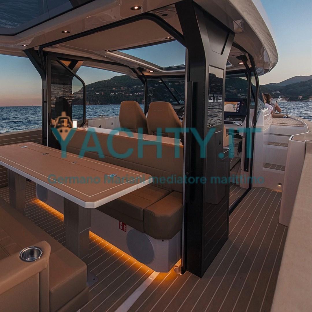 Propulsé par 2 moteurs Mercury V10 350 ch Black, il garantit une accélération rapide et une maniabilité précise, soutenu par la dernière génération d’instruments avec un écran Simrad NSS4 de 16", GPS, sondeuse d’écho et VHF. Le cockpit est un véritable salon sur l’eau, sublimé par un cockpit en teck, des tables pliantes (salon avec pied électrique), des lumières de courtoisie ainsi que des lumières sous-marines qui transforment l’amarrage du soir en un moment pittoresque.