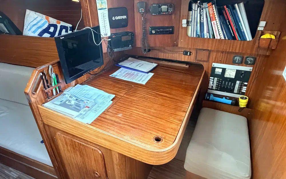 Ce bateau a bénéficié d’un suivi sérieux avec de nombreux travaux réalisés depuis 2011, touchant aussi bien la mécanique, le gréement que l’équipement de bord.La dépose du moteur pour révision complète, le remplacement de l’arbre d’hélice, du gréement dormant ou encore de nombreuses batteries et équipements témoignent d’un entretien régulier.