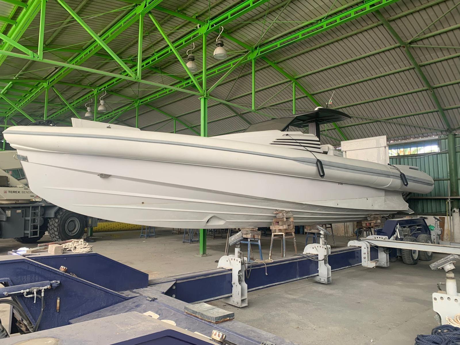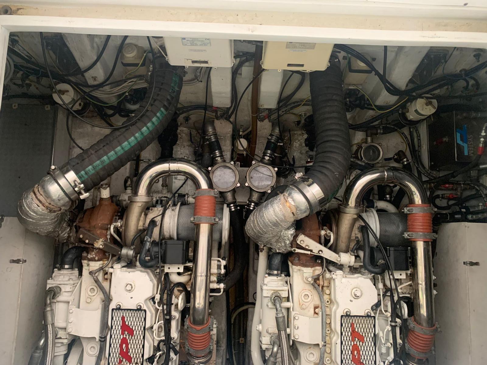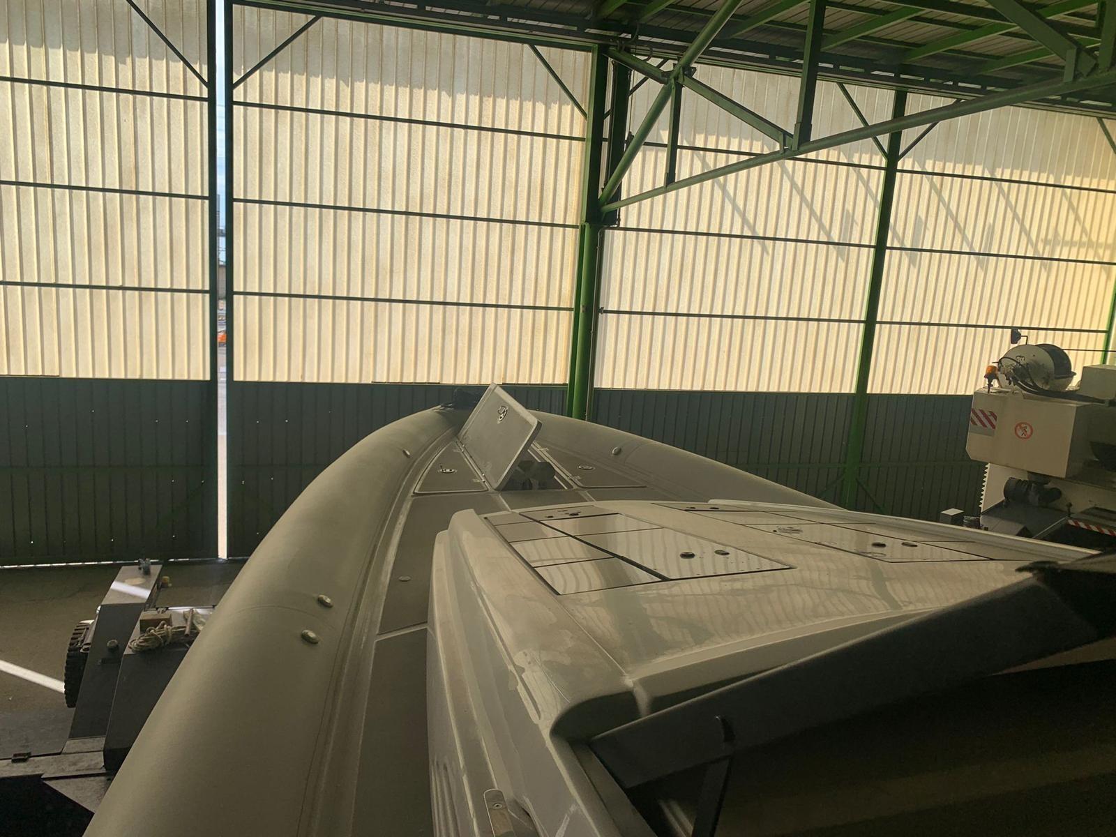 L’un des éléments remarquables est l’aile en fibre de verre à la poupe qui s’ouvre hydrauliquement sur l’eau, augmentant la surface du plancher et réduisant le roulis à l’ancre. La conception de la coque et la proue « perforante des vagues » assurent un grand confort même en mer agitée, maintenant une flottabilité constante sans cabrata.