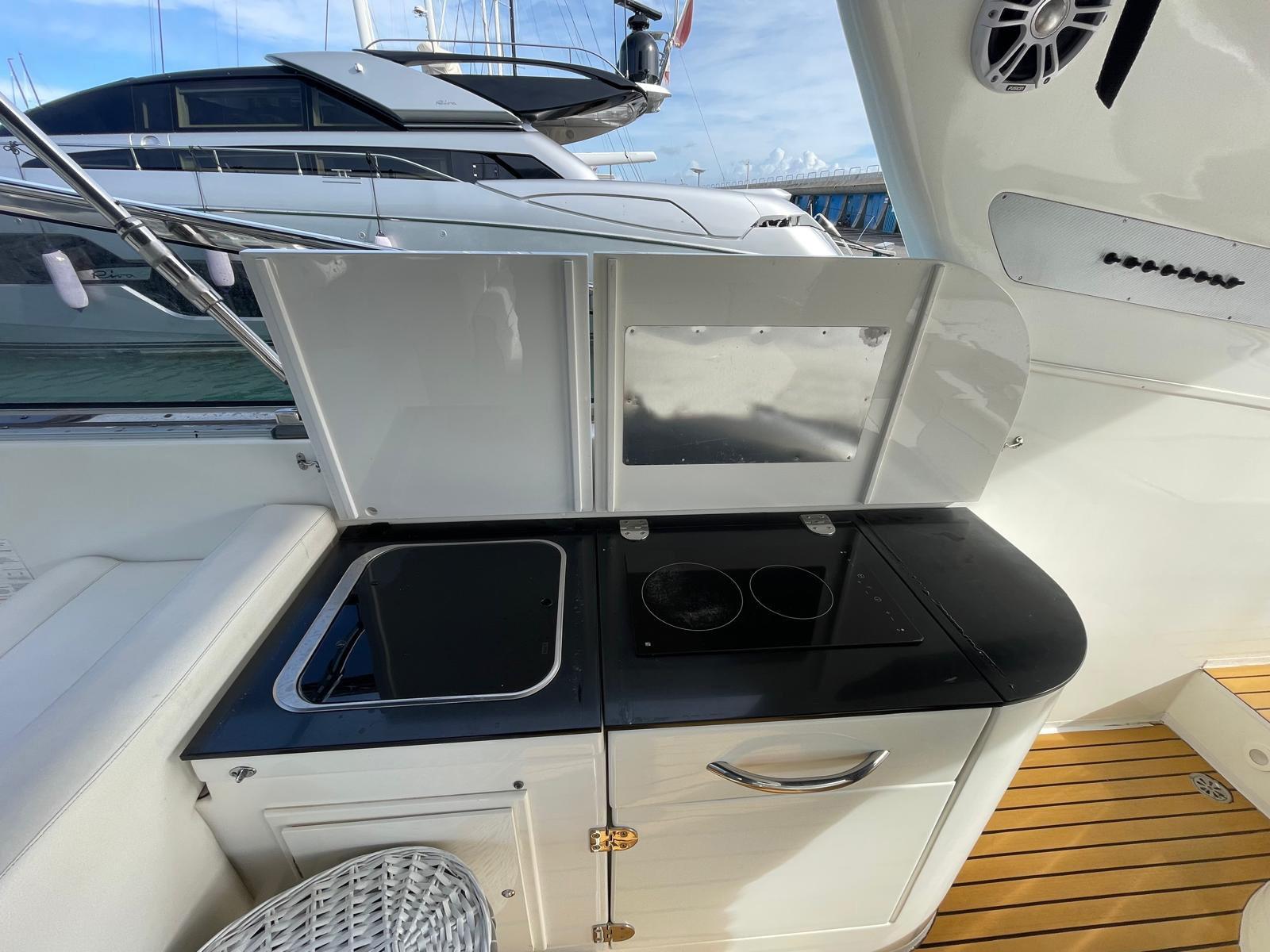 installation de nouveaux instruments de navigation Garmin - entretien officiel extraordinaire des transmissions Arneson (raccords, joints, unités de contrôle, etc.) - équilibrage des hélices - installation d’une nouvelle climatisation Dometic - remplacement de la plaque de cuisine - installation de four à micro-ondes combiné - remplacement du réfrigérateur cockpit - entretien extraordinaire du générateur - installation de teck synthétique dans le cockpit et la salle à manger - polissage complet de la coque et de la superstructure - installation du système Fusion stéréo - laque portes et meubles - refonte de la plomberie, eaux noires, électricité.
