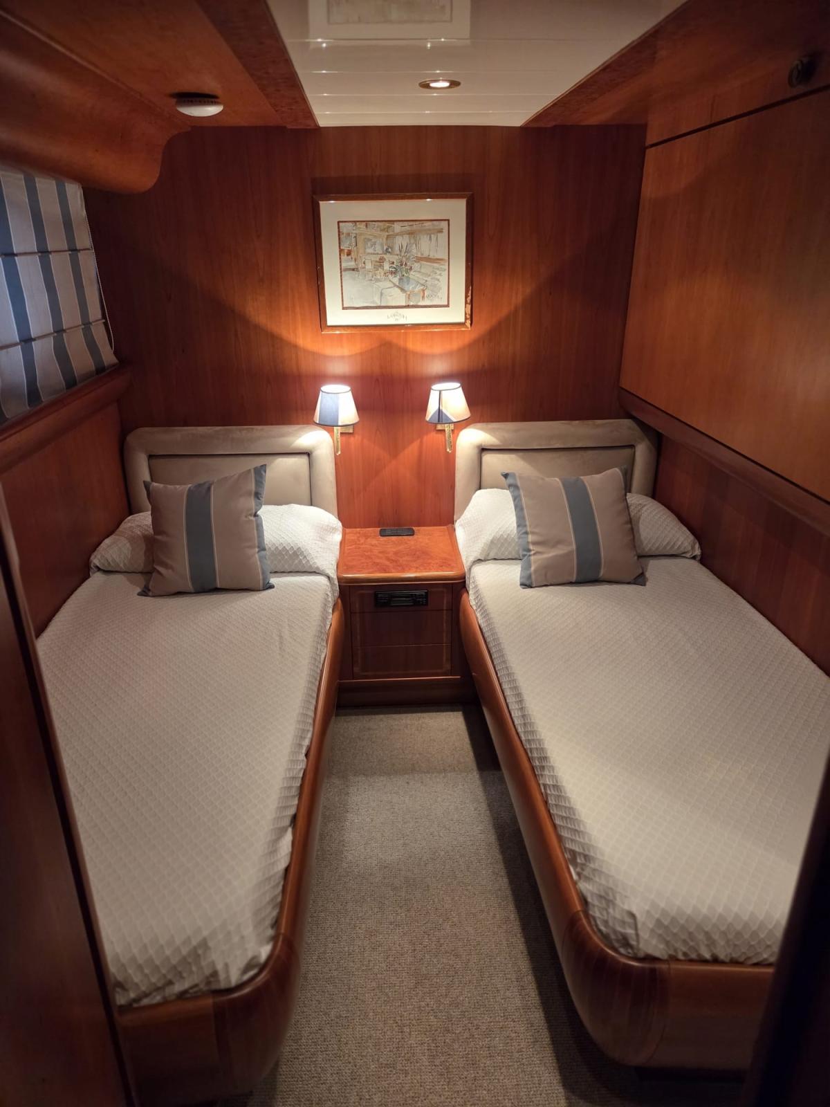 2020 : peinture complète de la coque et de la superstructure - teck neuf 15 mm - nouveaux coussins extérieurs, canapés flybridge, têtes de lit, rideaux et moquette - remplacement des nouveaux amarres arrière et révision du treuil d’ancre - révision du dessalinisateur.