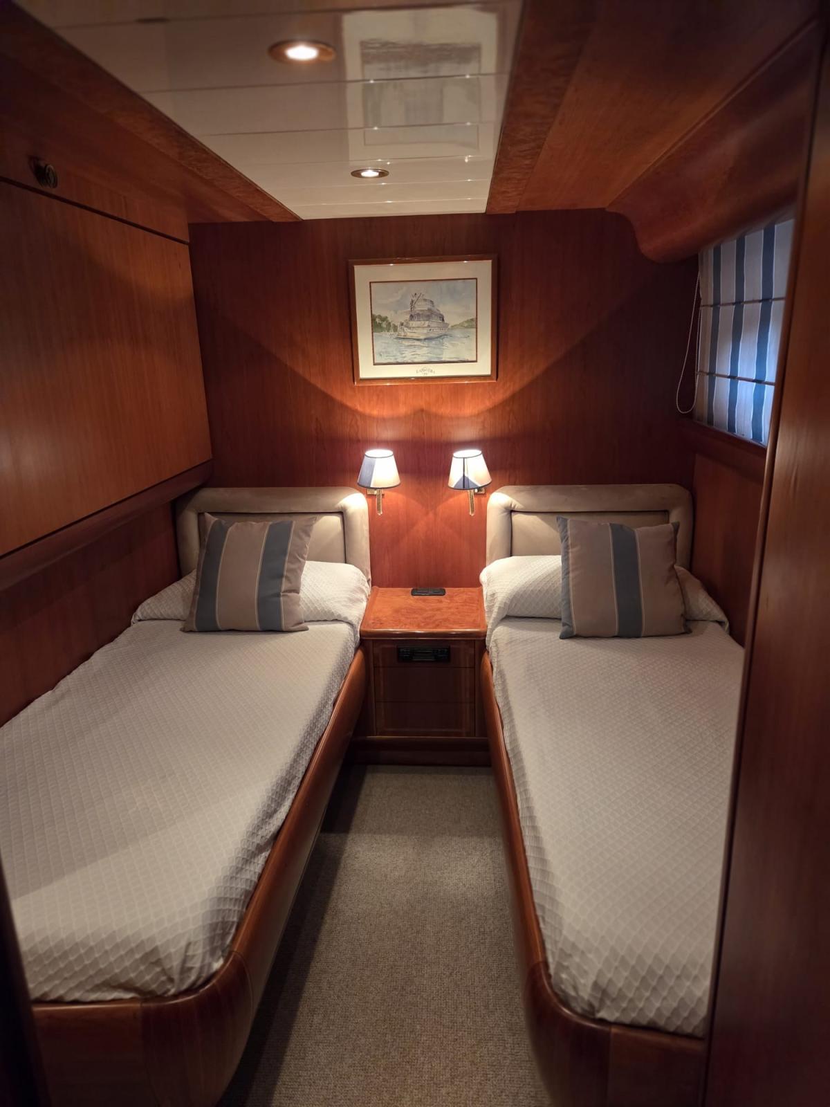 Cabine d’équipage pour deux à l’avant avec salle de bain - cabine d’équipage simple à l’arrière avec salle de bain.