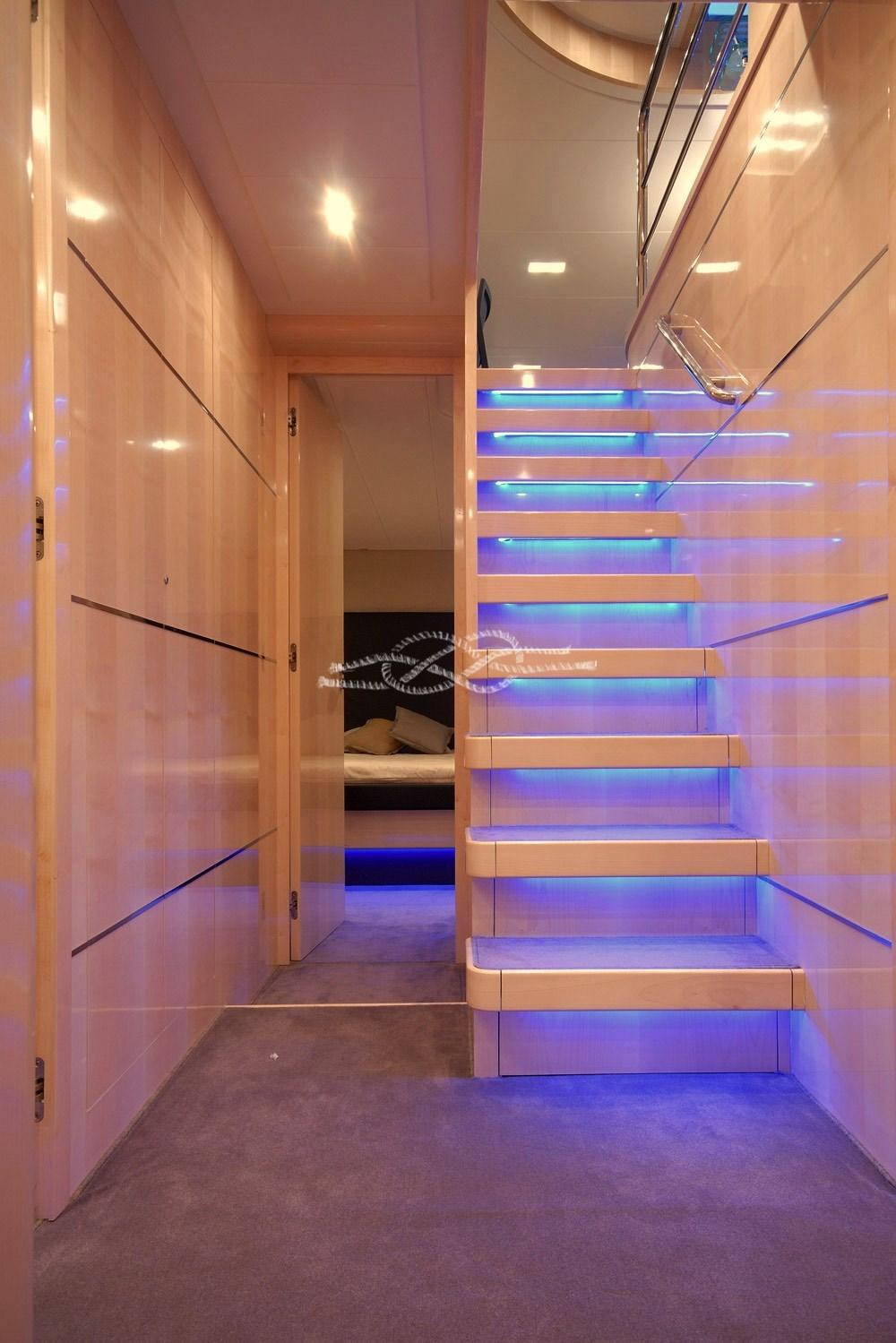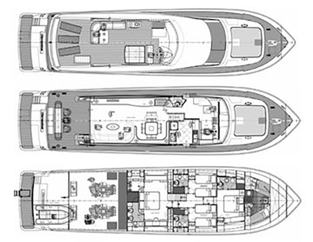 Plateforme arrière pour tender - troisième poste de contrôle à la poupe - propulseur hydraulique à l’avant - passerelle hydraulique - climatisation Condaria dans toutes les cabines et salle des machines - Onan 2 générateurs de 27 kW - Machine à eau - antenne TV par satellite - TV dans le salon et dans toutes les cabines - TV rétractable dans le cockpit - escalier intérieur pour accéder à la porte volante - toilettes de jour - double réfrigérateur et congélateur - four - plaque électrique - double évier - plans de travail en marbre - machine à laver Miele - Sèche-linge Miele - coussins complets - pont solaire à la proue - toit bimini - garage tender à la poupe - jet tender - système Hammann de traitement des eaux noires - bar humide à la volée avec évier, réfrigérateur tiroir en acier inoxydable et machine à glace - Système audio fusion sur la passerelle aérienne.