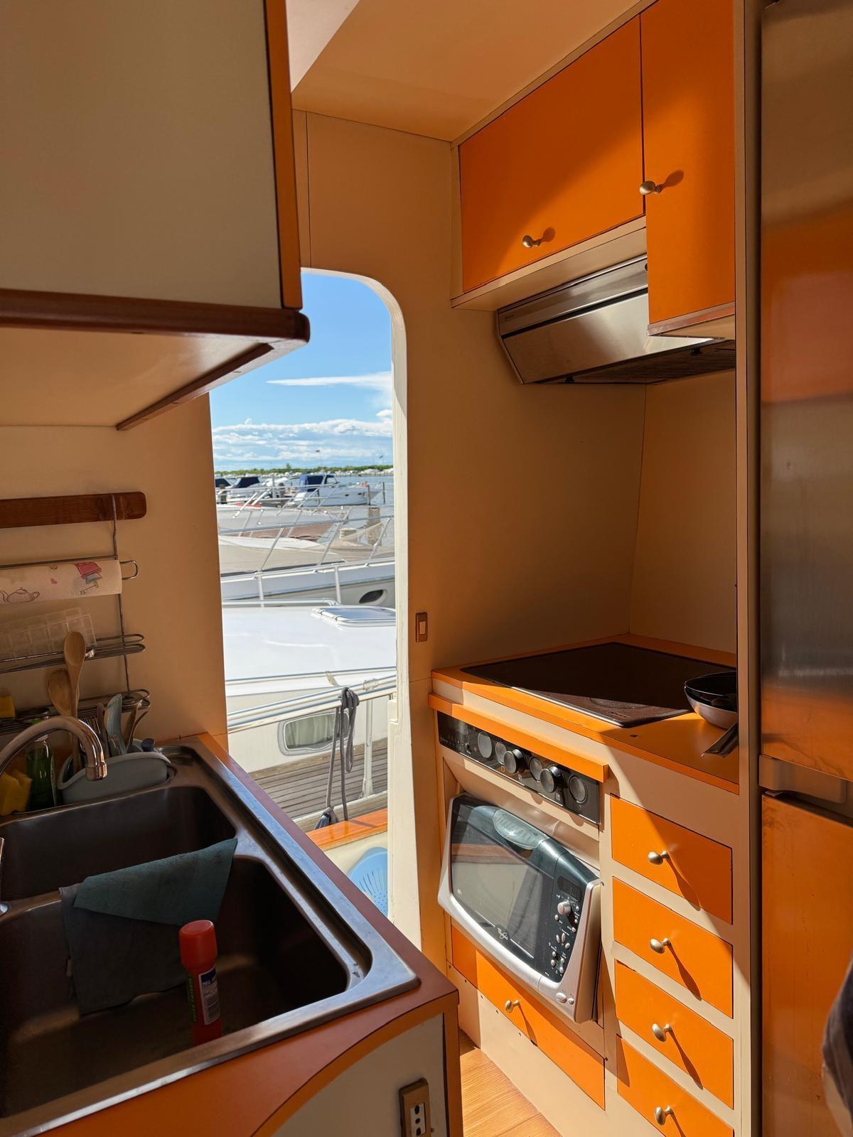 Passerelle électro-hydraulique - Annexe Novurania avec hors-bord Yamaha - Antenne TV - TV LCD - réfrigérateur - congélateur - plaque de cuisson électrique 4 feux - micro-ondes - propulseur d’étrave électrique - groupe électrogène.
