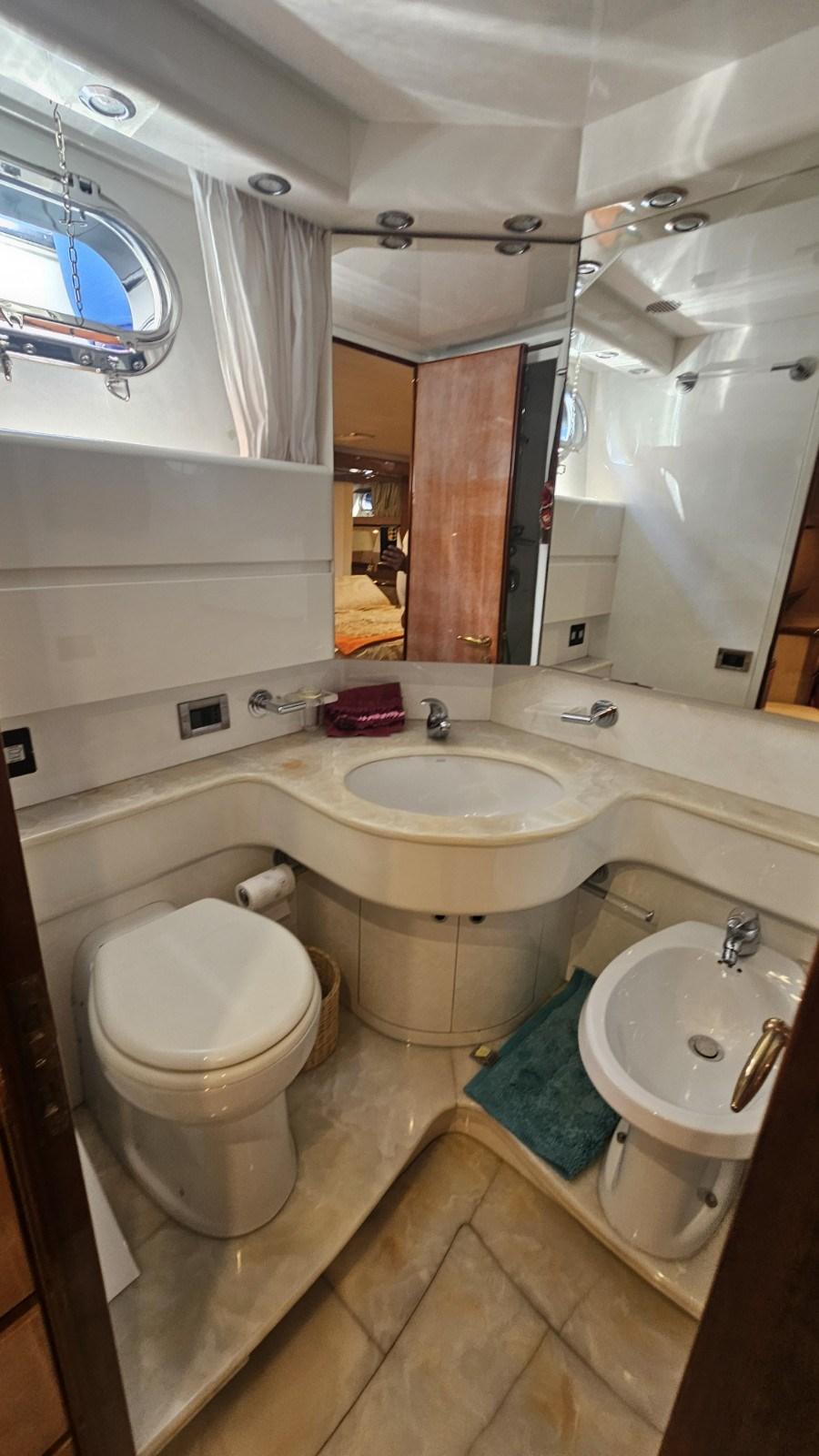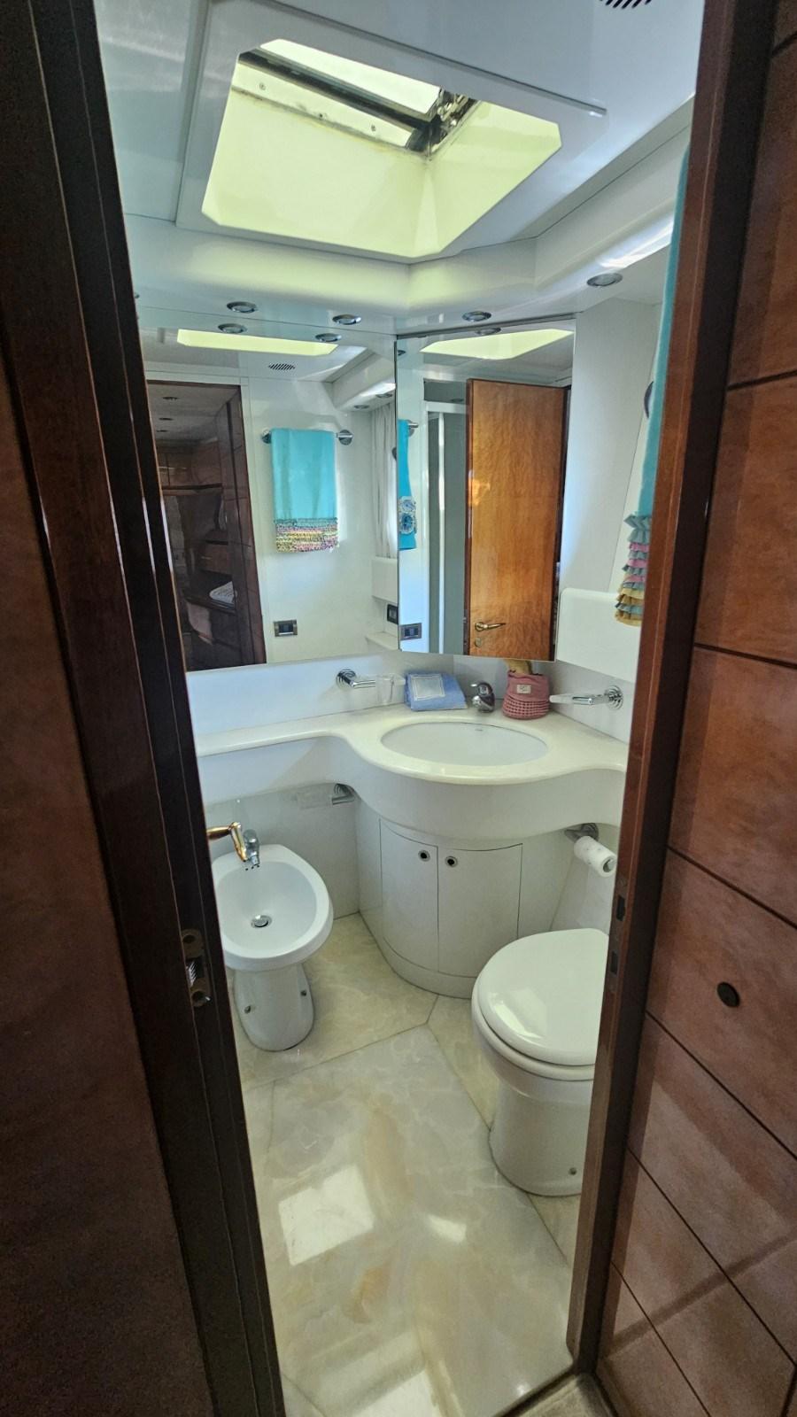 Climatisation Condaria - 2 groupes électrogènes Kohler de 15 kW - passerelle électro-hydraulique escamotable - garage à annexe arrière - annexe avec hors-bord - propulseur d’étrave hydraulique - antenne TV satellite - TV LCD - dessalinisateur - meuble bar de cockpit avec évier et réfrigérateur - réfrigérateur - congélateur - plaque de cuisson électrique 4 brûleurs - lave-vaisselle - chaîne stéréo - machine à glaçons - compresseur d’air.
