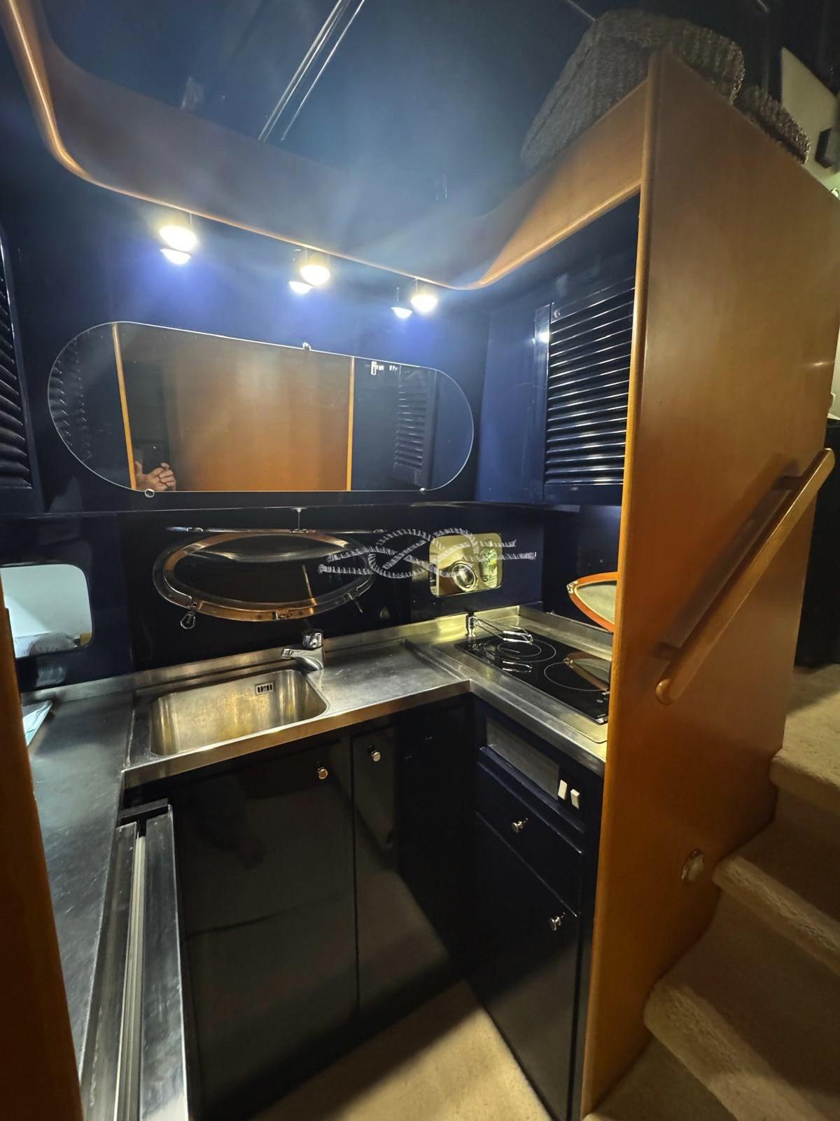 Propulseur d’étrave électrique rapide - Climatisation Frigit - Groupe électrogène Onan 12 kW - Passerelle électro-hydraulique - Réfrigérateurs - plaque de cuisson électrique à deux brûleurs - Coussins de bronzage.