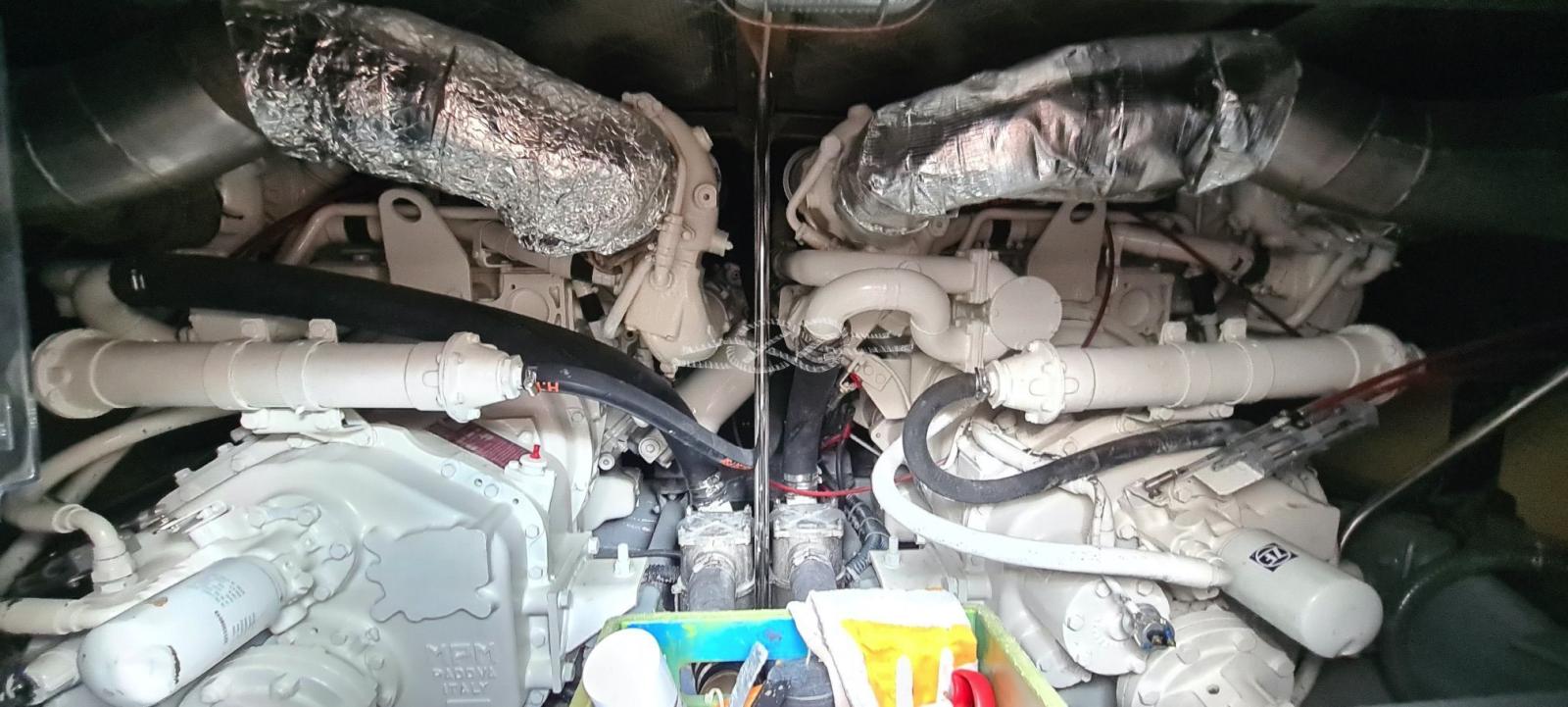 peinture du vert extérieur - remplacement de toutes les lumières LED externes et internes - nouveau système de télévision numérique avec antenne amplifiée et deux téléviseurs LCD - installation de prises 220v supplémentaires - rénovation du système électrique du panneau de spot - rénovation du système de mouche 12v et des prises de dînette 12v - remplacement de la chaîne stéréo de la dinette - nouveau kit de répartiteur pour la salle de bain du propriétaire et la salle de bain des invités - nouvelle toilette manuelle pour l’équipage - remplacement de l’interrupteur de batterie par de nouveaux interrupteurs de batterie électroniques - déconnexion et vérification de chaque batterie (moteurs et services) - remplacement de la chaudière - nouvelle plaque vitrocéramique - installation de l’interrupteur de batterie pour groupe électrogène parallèle - remplacement des néons par des bandes LED - installation de spots de courtoisie dans le cockpit - installation de vannes supplémentaires pour système d’évacuation de cale (Lupe) - nouvelle passerelle électro-hydraulique.